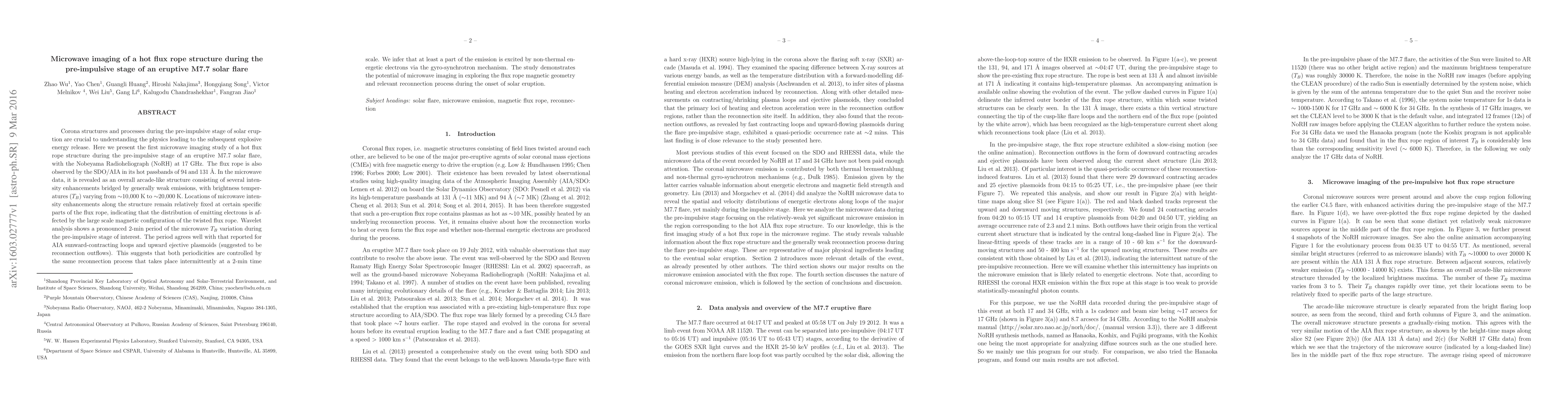 This study uses microwave imaging with the Nobeyama Radioheliograph to observe a hot flux rope during the pre-impulsive stage of an M7.7 solar flare, revealing an arcade-like structure with varying brightness temperatures. The analysis suggests a 2-minute periodic reconnection process driving the observed microwave emissions.