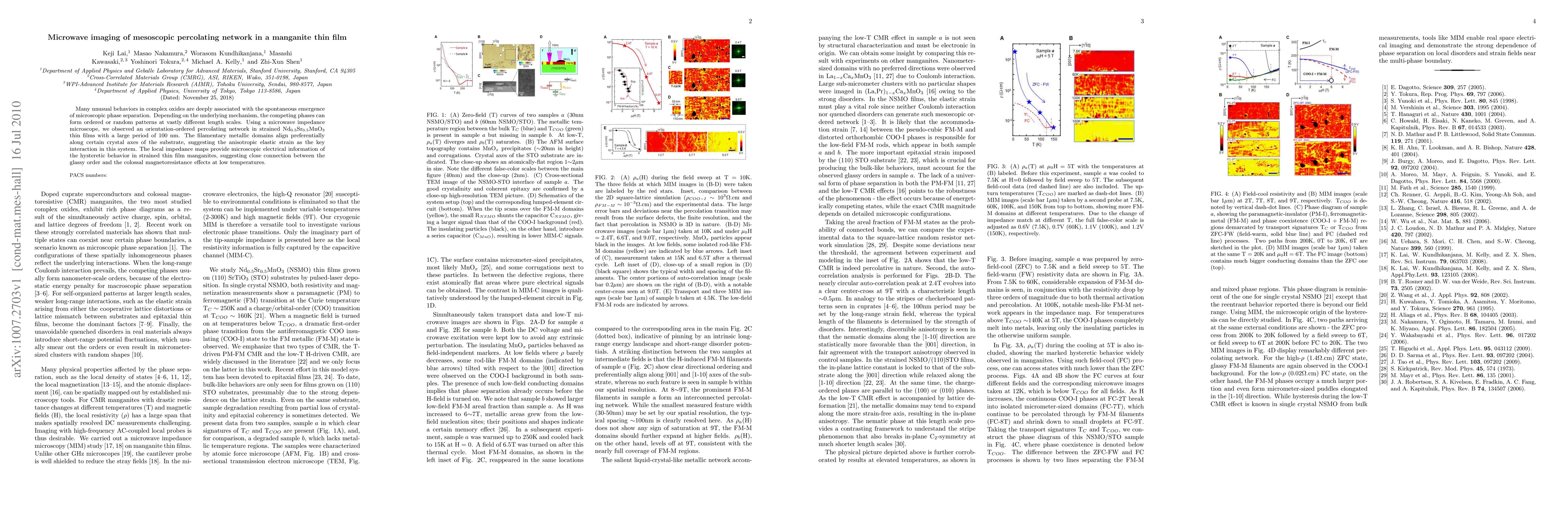 This paper uses microwave impedance microscopy to observe an orientation-ordered percolating network in Nd0.5Sr0.5MnO3 thin films, revealing filamentary metallic domains aligned along specific crystal axes due to anisotropic elastic strain. The study links the glassy order and colossal magnetoresistance effects in these strained manganites.