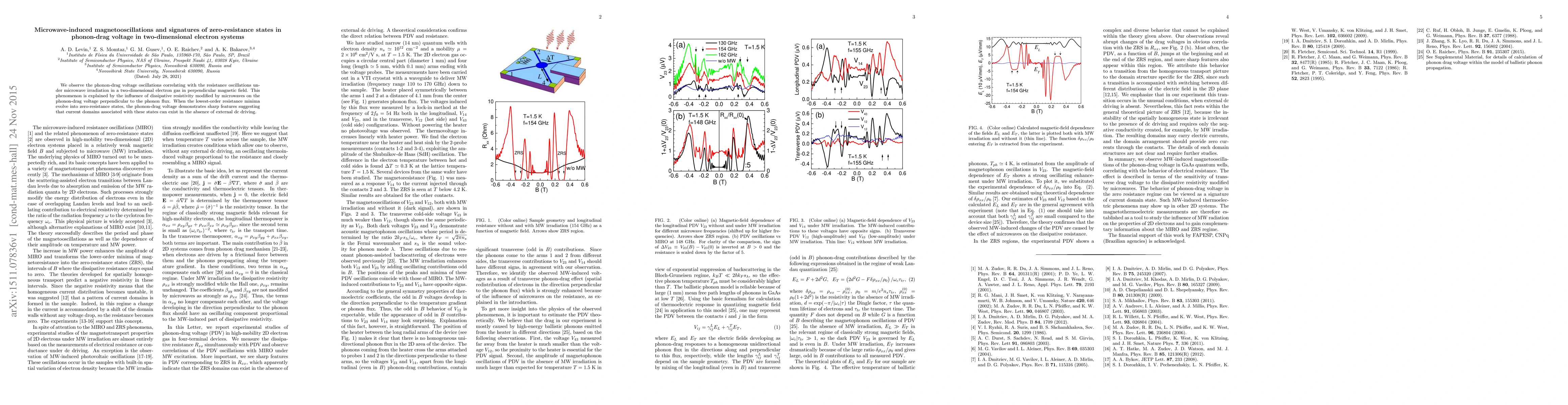 This paper reports microwave-induced magnetooscillations in two-dimensional electron systems, correlating phonon-drag voltage with resistance oscillations under magnetic fields. The study reveals zero-resistance states in the lowest-order resistance minima, suggesting current domains can exist without external dc driving.