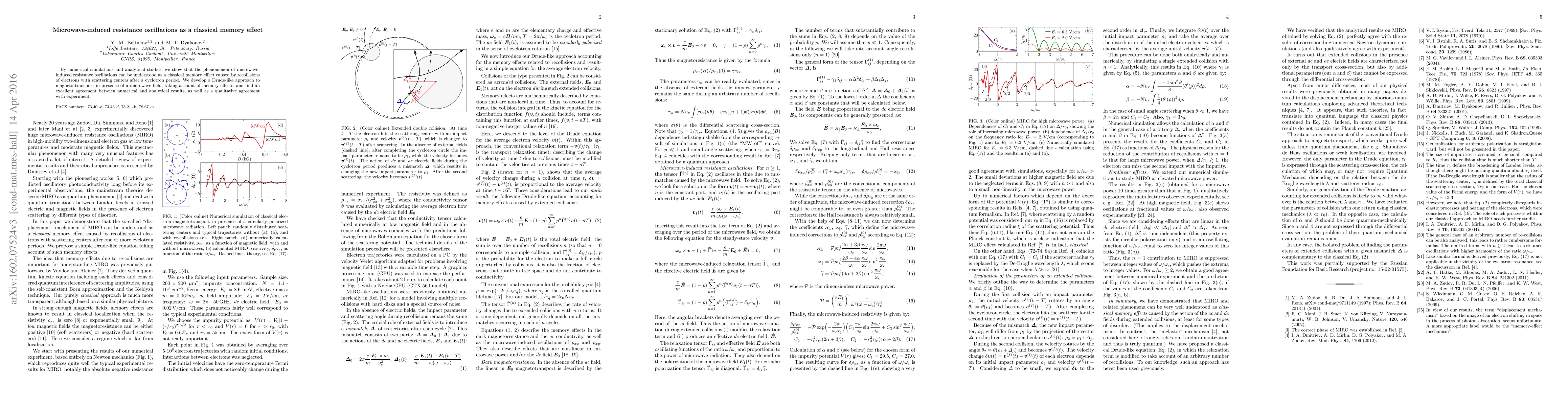 By numerical simulations and analytical studies, we show that the phenomenon of microwave-induced resistance oscillations can be understood as a classical memory effect caused by re-collisions of electrons with scattering centers after a cyclotron period. We develop a Drude-like approach to magneto-transport in presence of a microwave field, taking account of memory effects, and find an excellent agreement between numerical and analytical results, as well as a qualitative agreement with experiment.