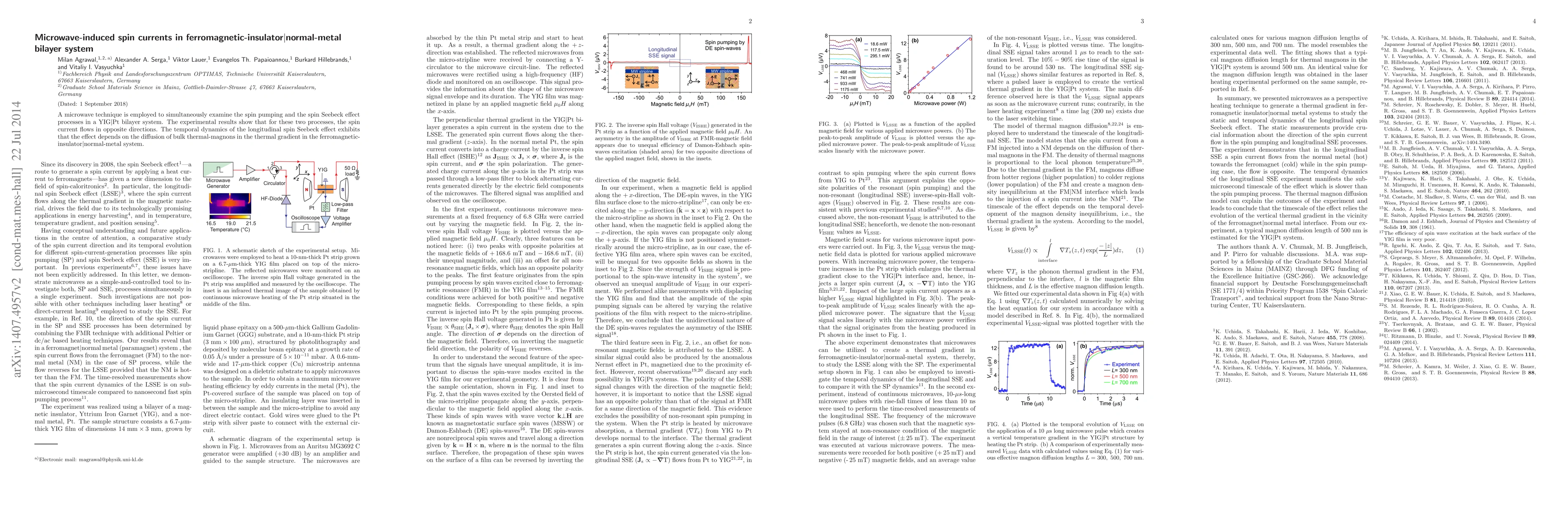 This paper investigates microwave-induced spin currents in a YIG|Pt bilayer system, revealing opposite spin current directions for spin pumping and the spin Seebeck effect. The study finds that the temporal dynamics of the spin Seebeck effect are influenced by the diffusion of thermal-magnons in the thermal gradient.
