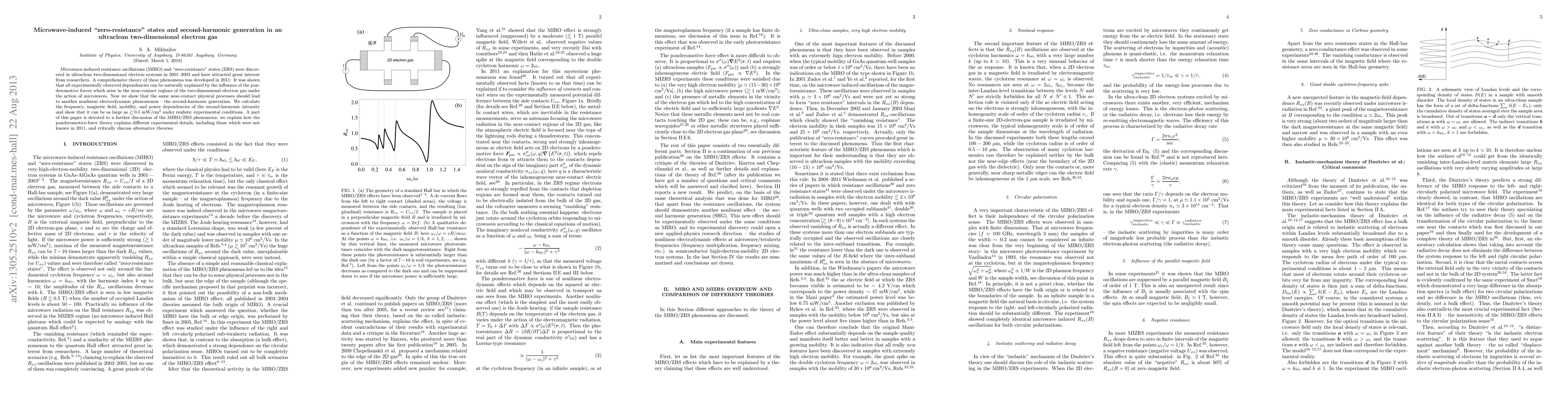 This paper investigates microwave-induced zero-resistance states (ZRS) and second-harmonic generation in ultraclean two-dimensional electron gases, demonstrating that ponderomotive forces in near-contact regions can explain both phenomena. It also calculates the second-harmonic generation's intensity dependencies and discusses how the ponderomotive-force theory accounts for various experimental details.