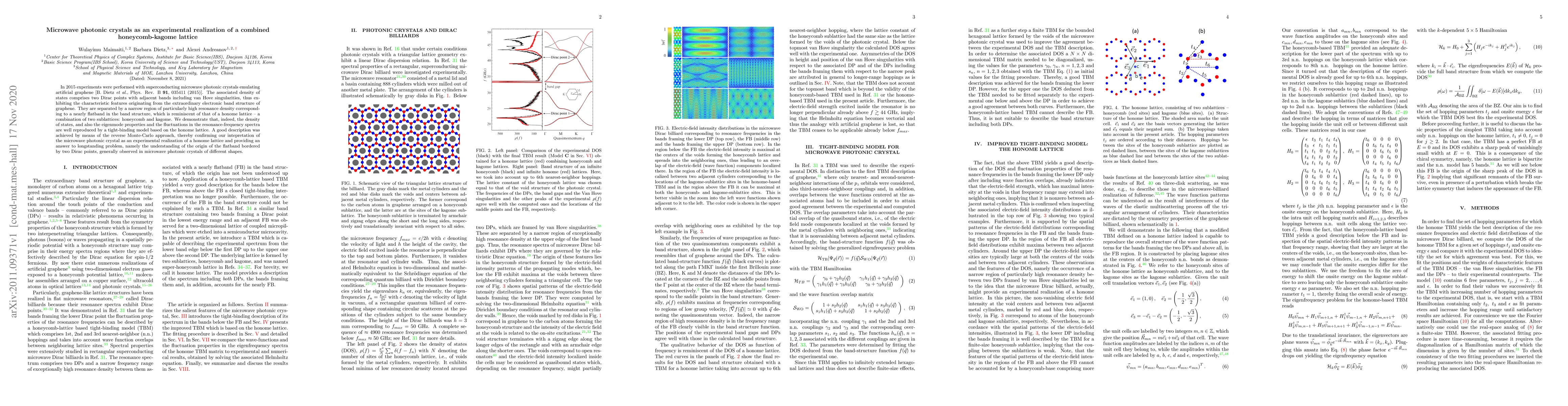 Researchers created microwave photonic crystals that mimic a combined honeycomb-kagome lattice, exhibiting Dirac points and flatband characteristics similar to graphene.