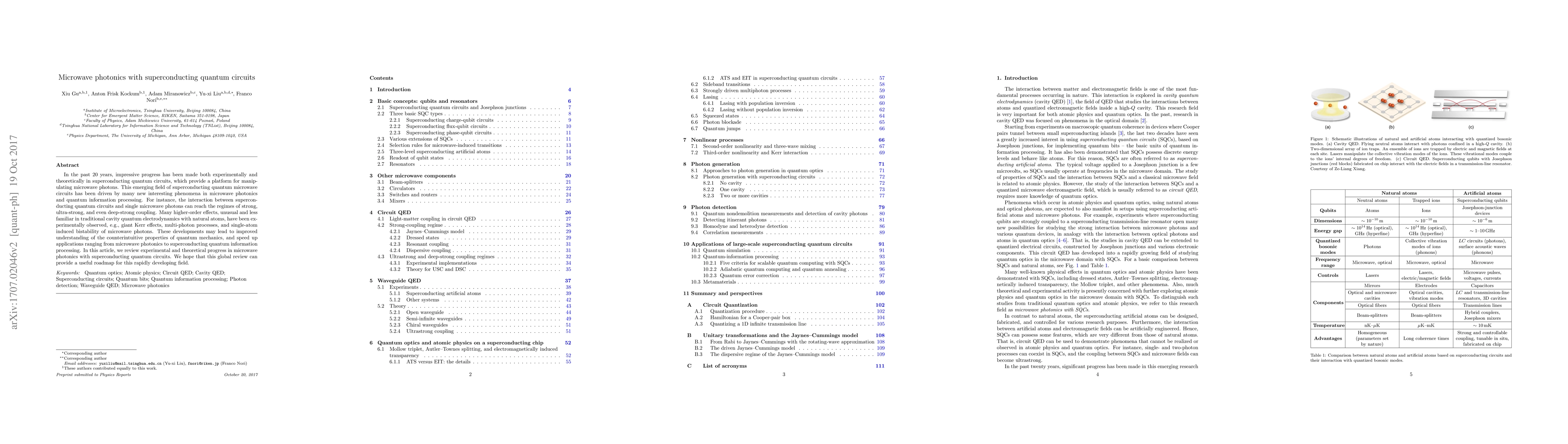 This paper reviews experimental and theoretical advancements in superconducting quantum circuits for microwave photonics, highlighting strong to deep-strong coupling regimes, and new phenomena like giant Kerr effects and multi-photon processes, potentially advancing quantum information processing.