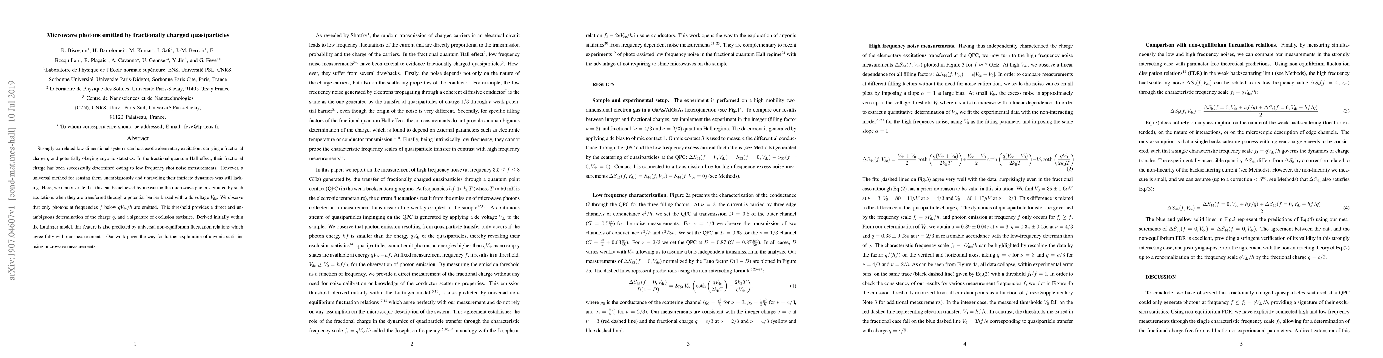 Researchers found a way to detect and measure microwave photons emitted by exotic particles with fractional charge, allowing for direct detection of their charge and signature of exclusion statistics. This method paves the way for further exploration of anyonic statistics using microwave measurements.