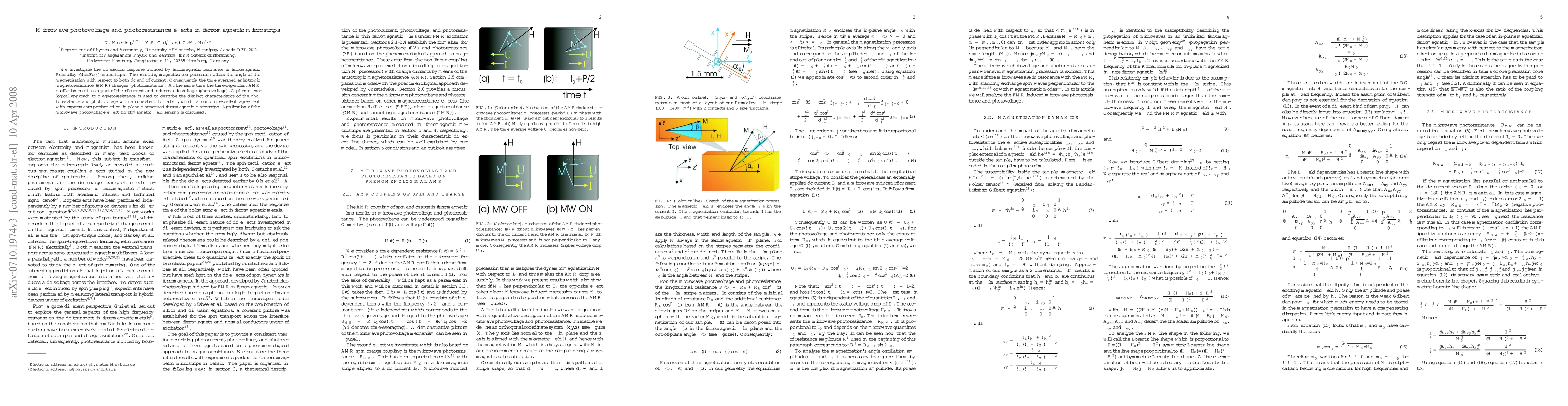 This paper explores the dc electric response in ferromagnetic Permalloy microstrips due to ferromagnetic resonance, revealing changes in anisotropic magnetoresistance (AMR) and inducing a dc voltage (photovoltage) and resistance (photoresistance). The study uses a phenomenological approach to describe these effects and aligns well with experimental observations.