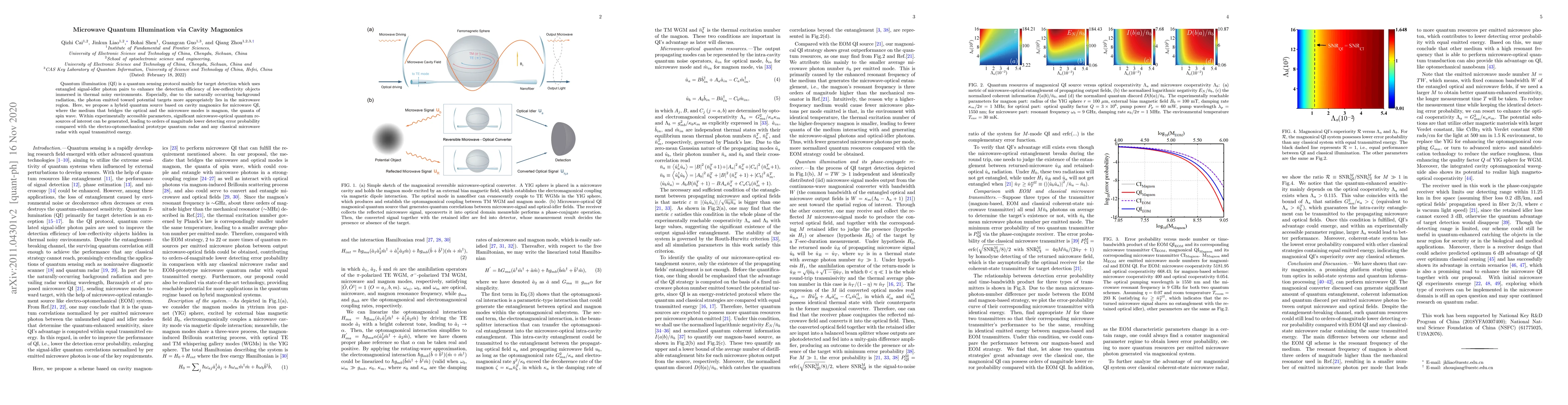 This paper proposes a hybrid quantum source using cavity magnonics for microwave quantum illumination, aiming to enhance target detection efficiency in noisy environments. The use of magnons, quanta of spin waves, bridges optical and microwave modes, achieving significantly lower detection error probabilities compared to classical and electro-optomechanical radar systems.
