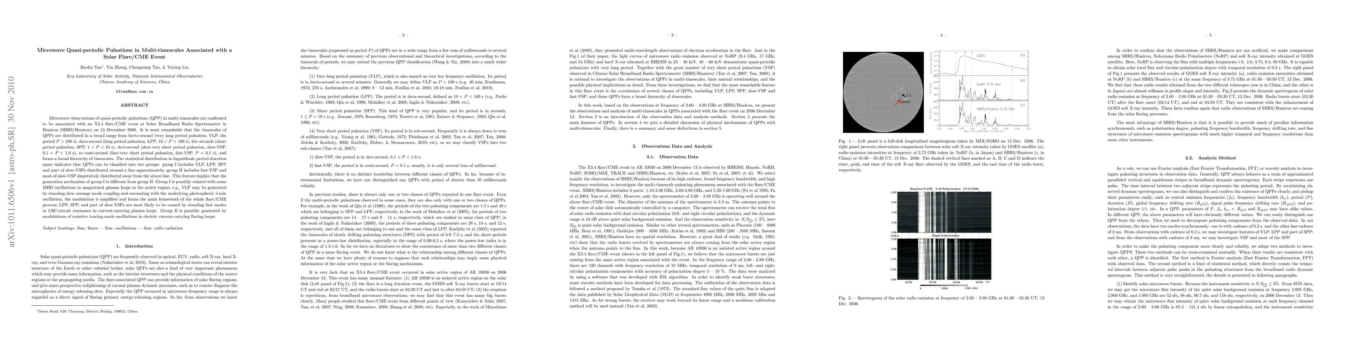 This paper investigates microwave quasi-periodic pulsations (QPP) in multi-timescales linked to an X3.4 solar flare/CME event on December 13, 2006. The QPPs span a broad range of periods, forming two distinct groups with different generation mechanisms: Group I (VLP, LPP, SPP, and part of slow-VSP) likely relates to MHD oscillations, while Group II (fast-VSP and most slow-VSP) may stem from resistive tearing-mode modulations.