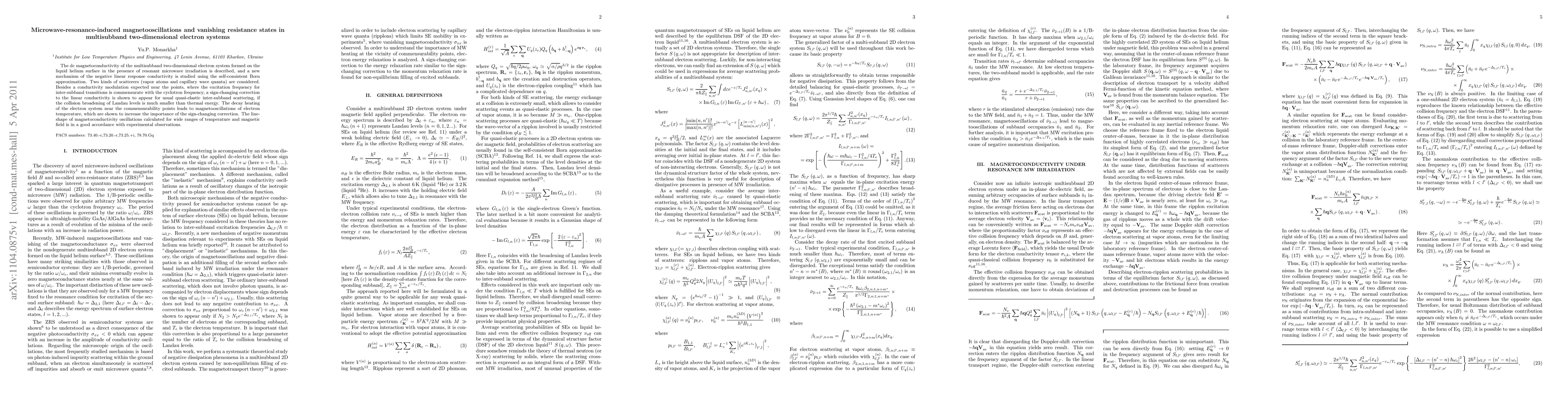 The study investigates microwave-induced magnetooscillations in multisubband two-dimensional electron systems on liquid helium, revealing a negative linear response conductivity mechanism and the influence of scatterers. Experimental observations match theoretical calculations of magnetoconductivity oscillations.