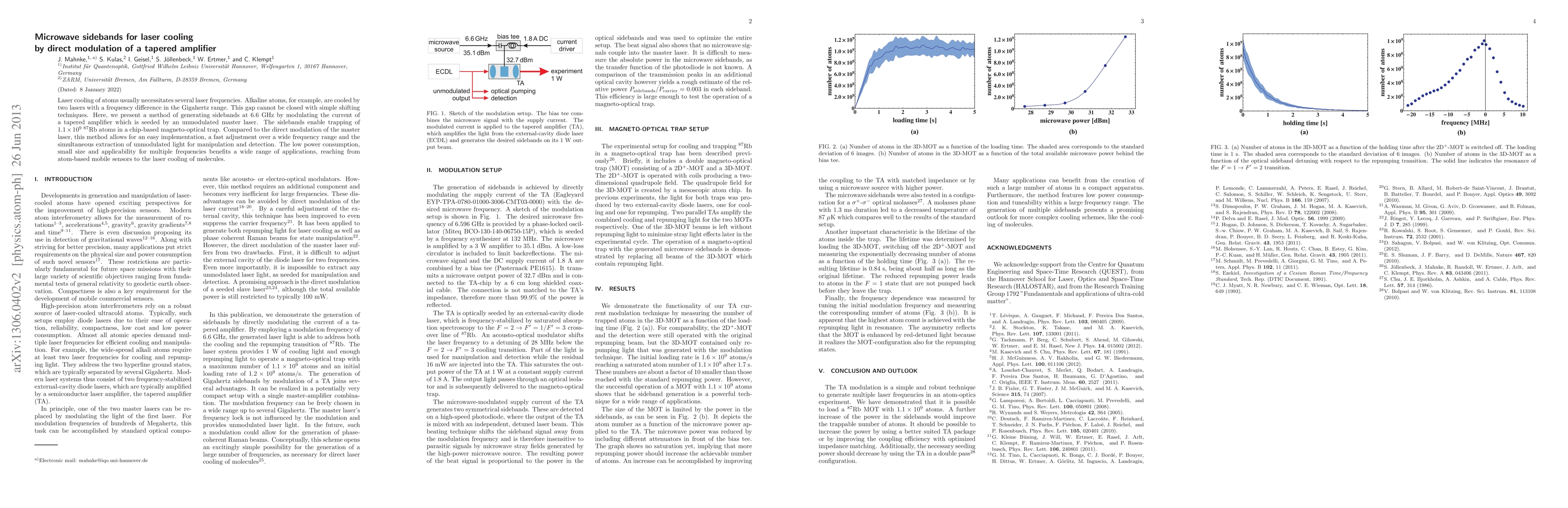 This research introduces a novel method for generating microwave sidebands at 6.6 GHz via current modulation of a tapered amplifier, enabling efficient laser cooling of Rubidium 87 atoms. The technique offers easy implementation, broad frequency adjustment, and minimal power consumption, suitable for various applications from atomic sensors to molecular cooling.
