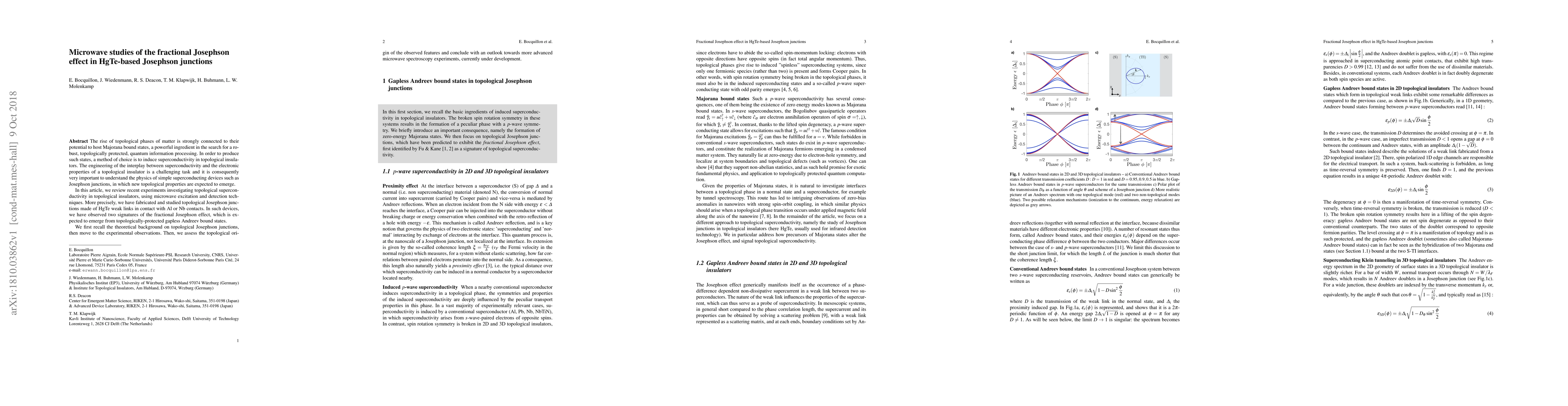 This paper reviews microwave studies of topological Josephson junctions in HgTe-based materials, revealing signatures of the fractional Josephson effect attributed to topologically-protected gapless Andreev bound states, and discusses future prospects for advanced microwave spectroscopy.