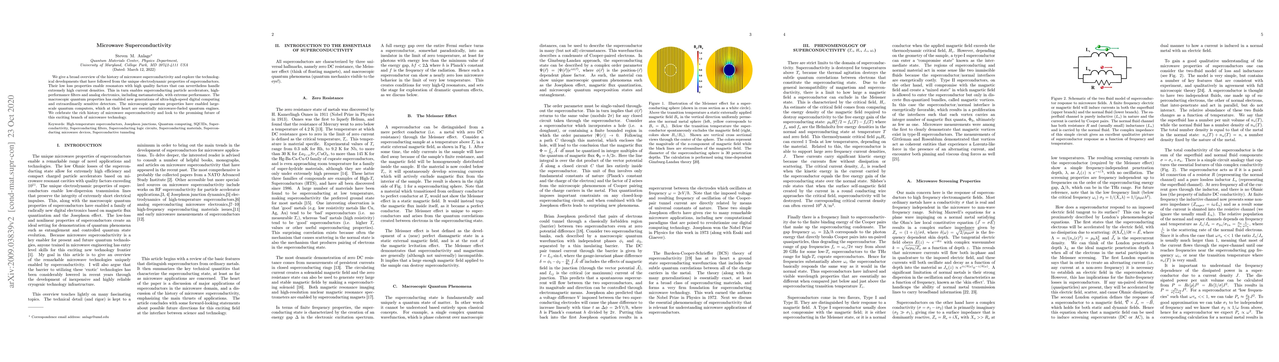 We give a broad overview of the history of microwave superconductivity and explore the technological developments that have followed from the unique electrodynamic properties of superconductors. Their low loss properties enable resonators with high quality factors that can nevertheless handle extremely high current densities. This in turn enables superconducting particle accelerators, high-performance filters and analog electronics, including metamaterials, with extreme performance. The macroscopic quantum properties have enabled new generations of ultra-high-speed digital computing and extraordinarily sensitive detectors. The microscopic quantum properties have enabled large-scale quantum computers, which at their heart are essentially microwave-fueled quantum engines. We celebrate the rich history of microwave superconductivity and look to the promising future of this exciting branch of microwave technology.