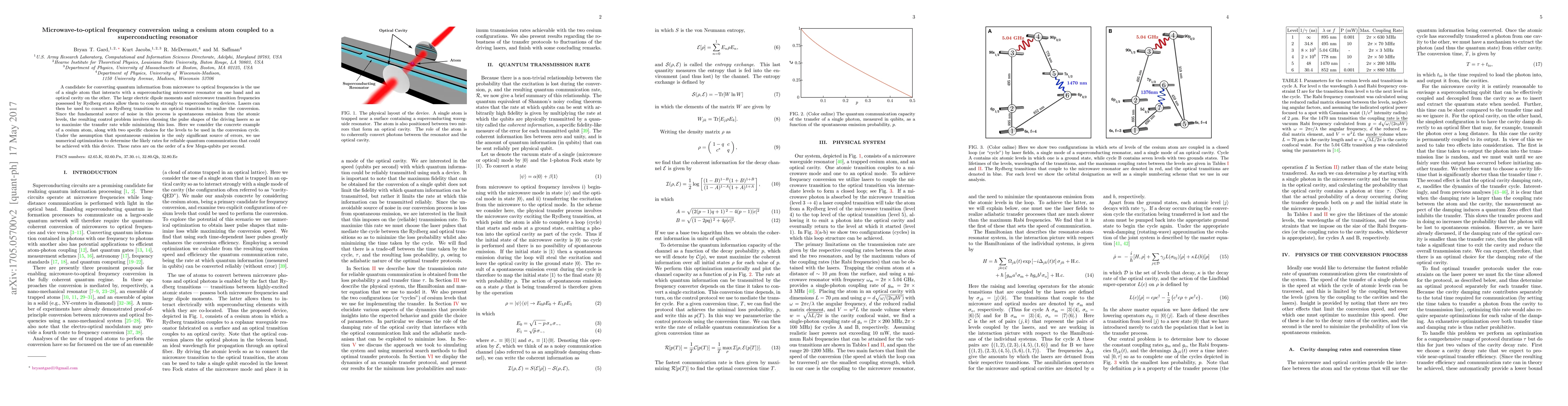 Researchers developed a method to convert quantum information from microwave to optical frequencies using a cesium atom coupled to a superconducting resonator and an optical cavity, achieving rates of a few Mega-qubits per second.