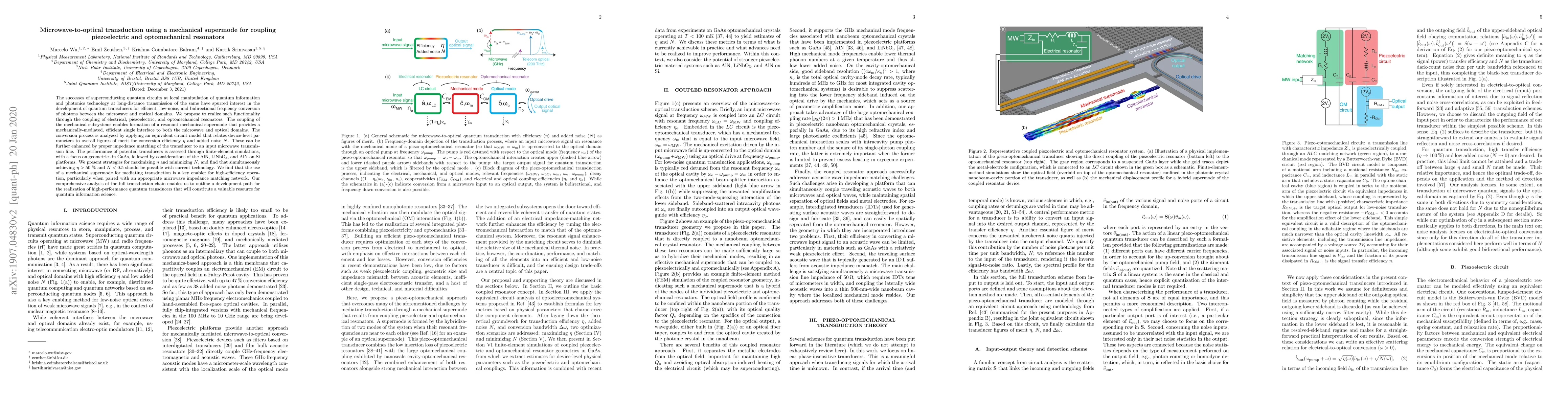 This paper proposes a novel quantum transducer that efficiently converts microwave photons to optical photons using a mechanical supermode to couple piezoelectric and optomechanical resonators. The study finds that high conversion efficiency and low noise can be achieved through proper impedance matching and material selection, suggesting significant potential for quantum information science applications.