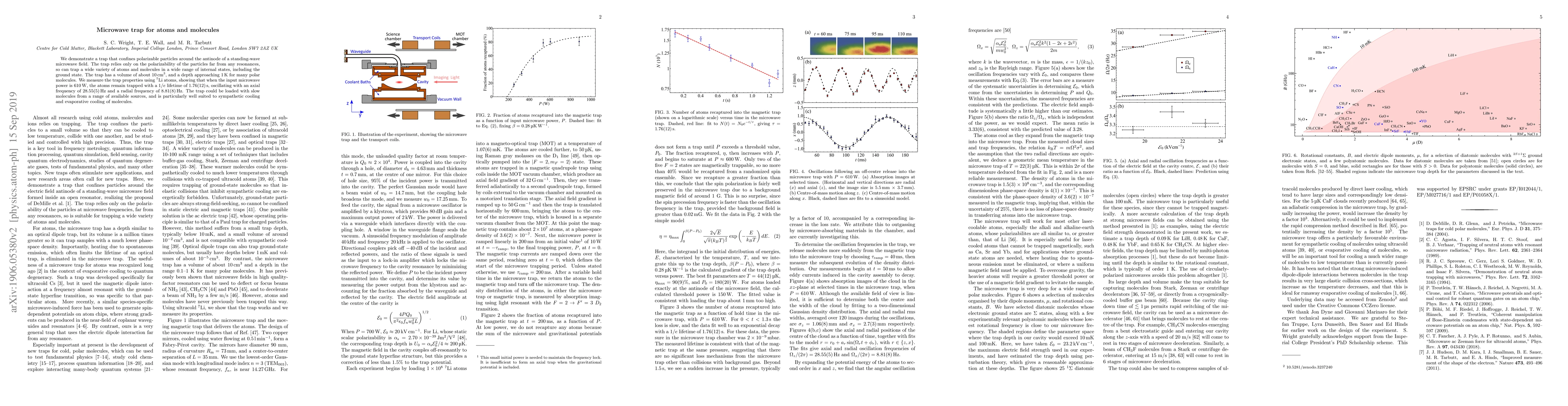 We demonstrate a trap that confines polarizable particles around the antinode of a standing-wave microwave field. The trap relies only on the polarizability of the particles far from any resonances, so can trap a wide variety of atoms and molecules in a wide range of internal states, including the ground state. The trap has a volume of about 10 cm$^3$, and a depth approaching 1 K for many polar molecules. We measure the trap properties using $^{7}$Li atoms, showing that when the input microwave power is 610 W, the atoms remain trapped with a $1/e$ lifetime of 1.76(12) s, oscillating with an axial frequency of 28.55(5) Hz and a radial frequency of 8.81(8) Hz. The trap could be loaded with slow molecules from a range of available sources, and is particularly well suited to sympathetic cooling and evaporative cooling of molecules.