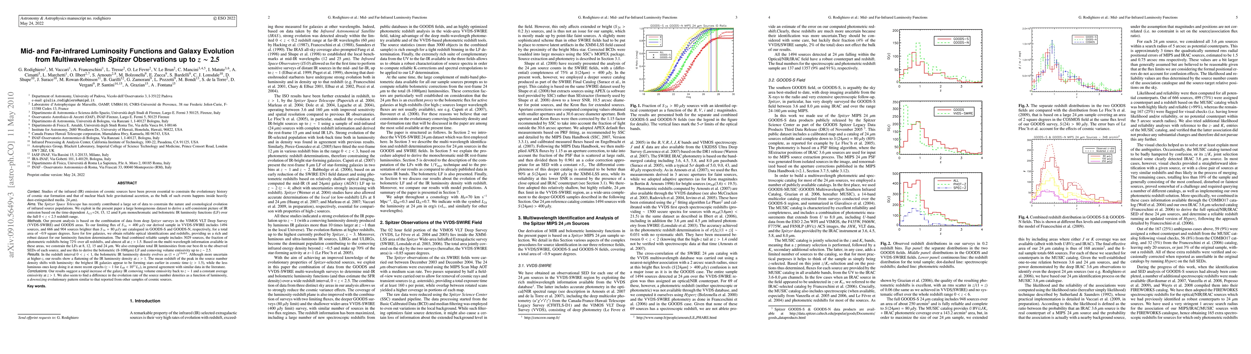 This paper uses Spitzer multiwavelength observations to derive the mid- and far-infrared luminosity functions up to z~2.5, revealing a rapid increase in galaxy IR emissivity back to z~1 and a flattening of IR luminosity density at higher redshifts. The study shows a downsizing pattern in galaxy evolution, with brighter IR galaxies forming stars earlier.