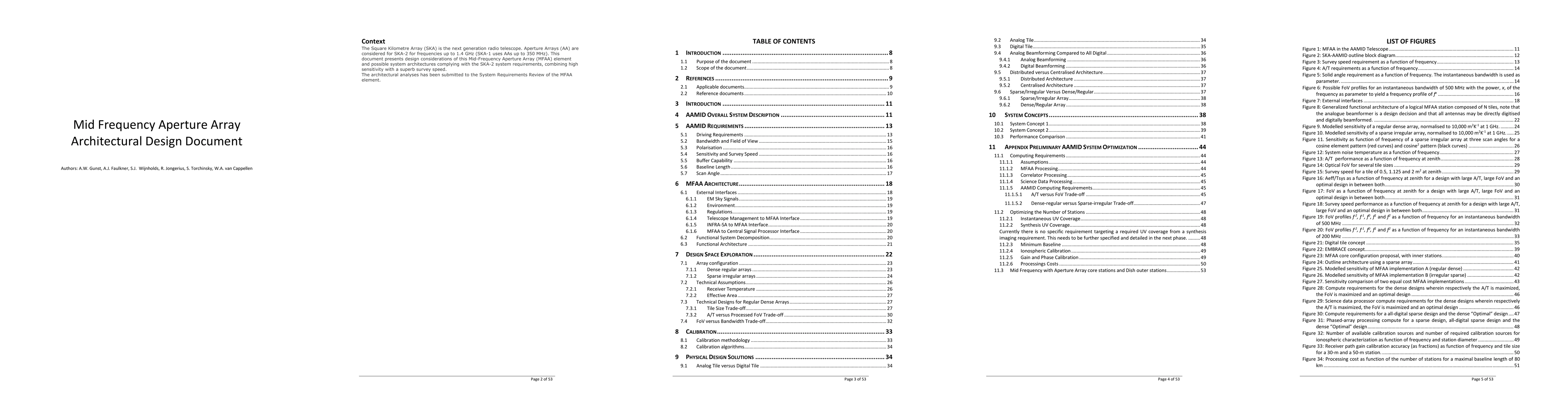 The Square Kilometre Array (SKA) is the next generation radio telescope. Aperture Arrays (AA) are considered for SKA-2 for frequencies up to 1.4 GHz (SKA-1 uses AAs up to 350 MHz). This document presents design considerations of this Mid-Frequency Aperture Array (MFAA) element and possible system architectures complying with the SKA-2 system requirements, combining high sensitivity with a superb survey speed. The architectural analyses has been submitted to the System Requirements Review of the MFAA element.