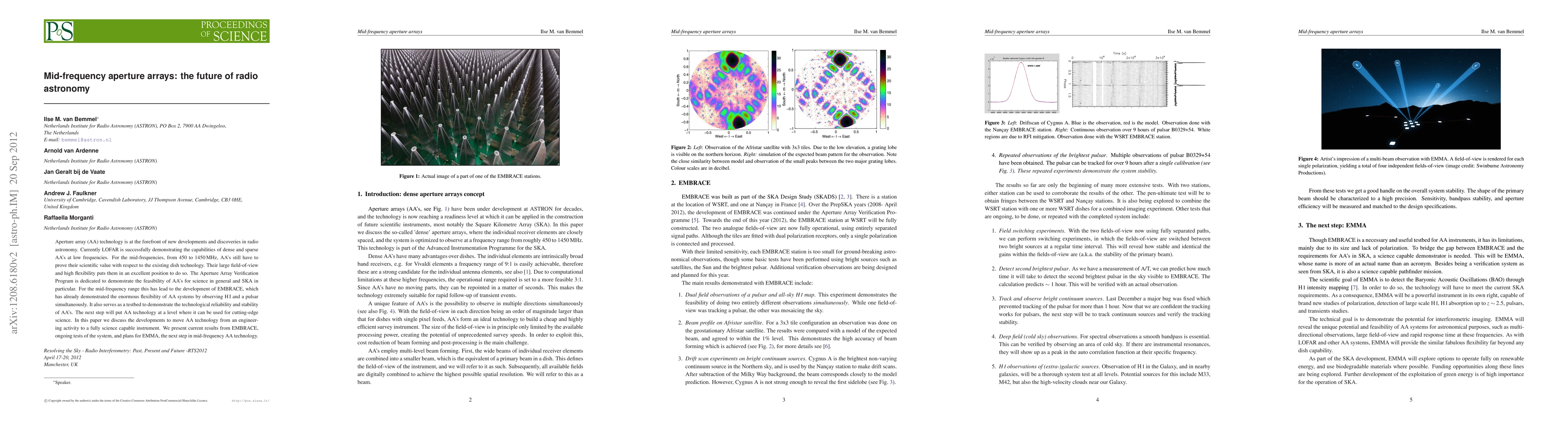 This paper discusses the advancements in mid-frequency aperture array (AA) technology for radio astronomy, highlighting the EMBRACE project's achievements and the transition from engineering to full scientific capability. Plans for the next-generation EMMA system aim to further demonstrate AA's potential in cutting-edge astronomical research.