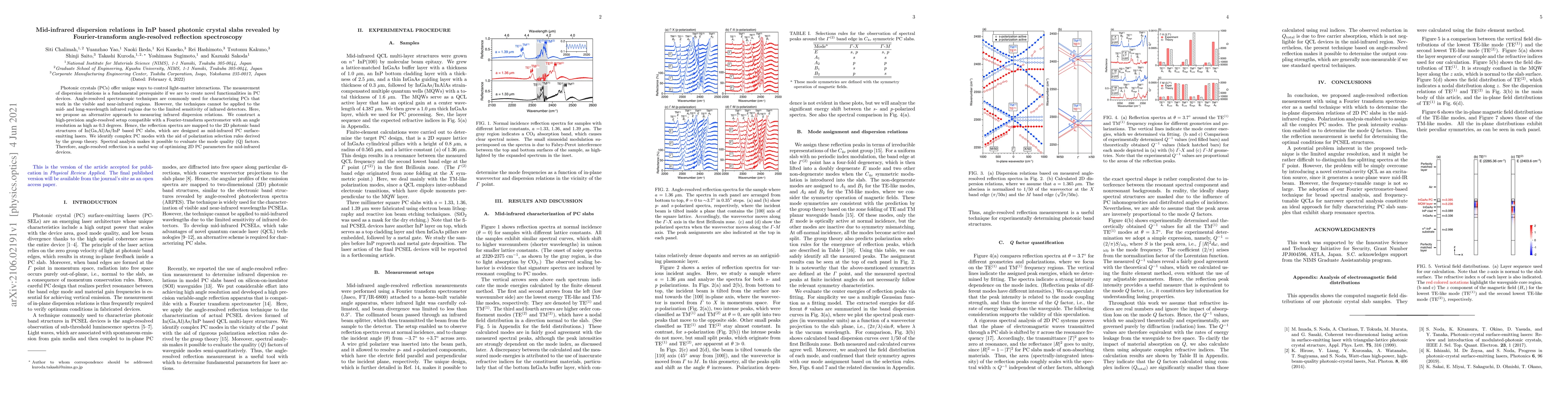 This paper proposes a high-precision Fourier-transform angle-resolved reflection spectroscopy method to measure mid-infrared dispersion relations in InP-based photonic crystal slabs, enabling detailed characterization of complex photonic modes and optimization of mid-infrared device parameters. The technique overcomes limitations of existing angle-resolved methods by achieving high angle resolution and mapping reflection spectra to photonic band structures.