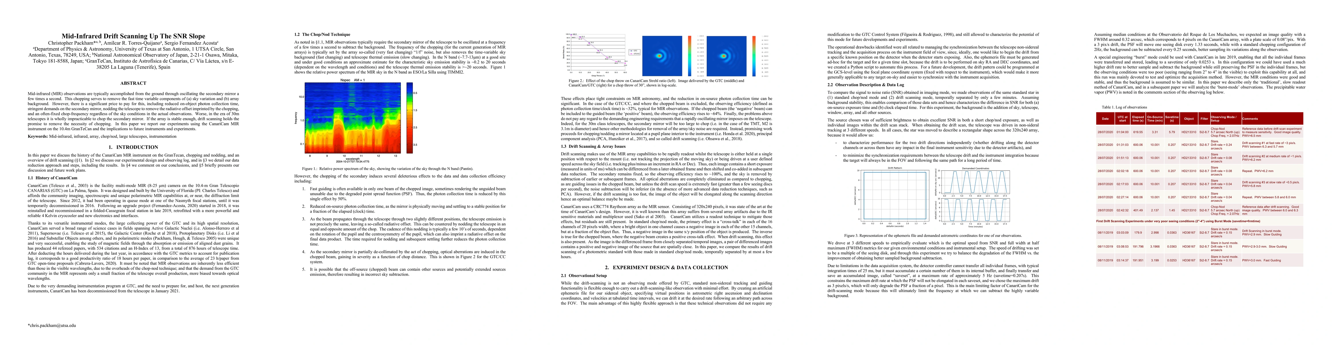 Mid-infrared (MIR) observations are typically accomplished from the ground through oscillating the secondary mirror a few times a second. This chopping serves to remove the fast time variable components of (a) sky variation and (b) array background. However, there is a significant price to pay for this, including reduced on-object photon collection time, stringent demands on the secondary mirror, nodding the telescope to remove the radiative offset imprinted by the chopping, and an often-fixed chop-frequency regardless of the sky conditions in the actual observations. Worse, in the era of 30m telescopes it is wholly impracticable to chop the secondary mirror. If the array is stable enough, drift scanning holds the promise to remove the necessity of chopping. In this paper we report our experiments using the CanariCam MIR instrument on the 10.4m GranTeCan and the implications to future instruments and experiments.