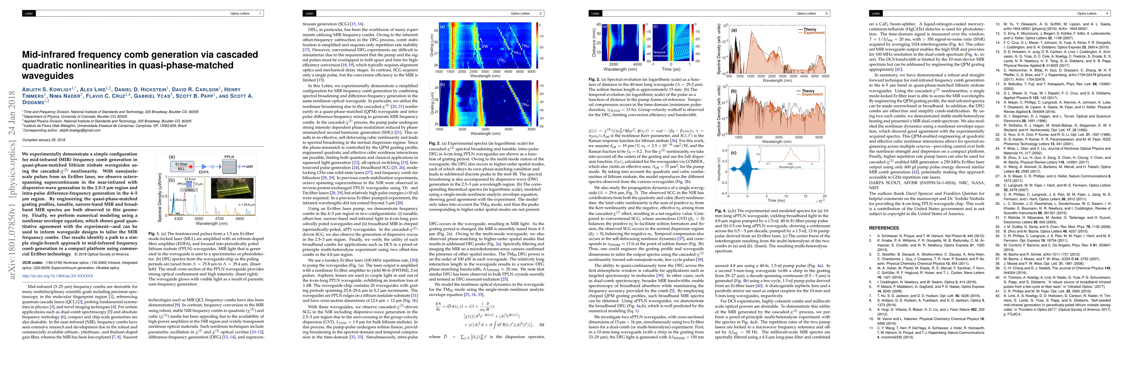 The paper presents an experimental demonstration and numerical modeling of MIR frequency comb generation via cascaded quadratic nonlinearities in quasi-phase-matched waveguides, showcasing spectral engineering capabilities and providing a pathway to compact MIR comb sources.