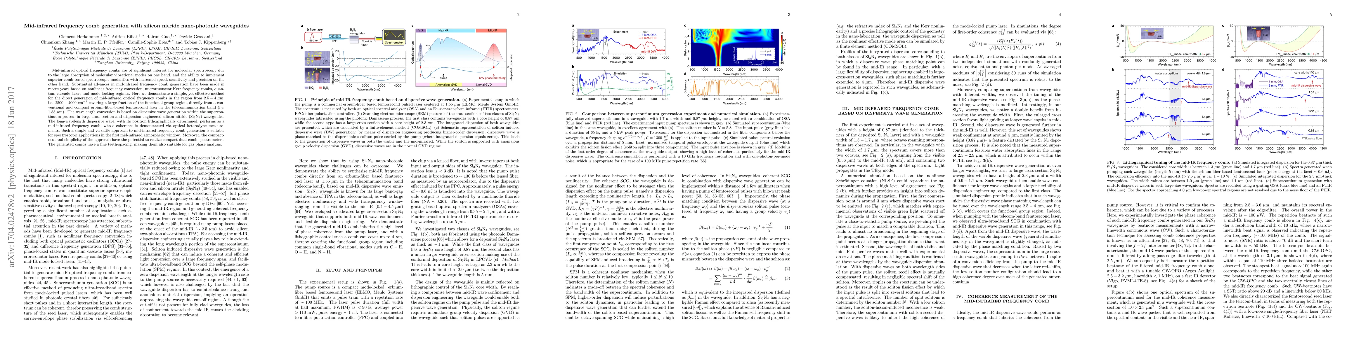 This paper demonstrates a method for generating mid-infrared optical frequency combs using dispersive wave generation in silicon nitride waveguides, converting from a compact erbium-fiber-based femtosecond laser. The approach offers a simple, coherent mid-infrared frequency comb suitable for molecular spectroscopy and compact dual-comb spectrometers.