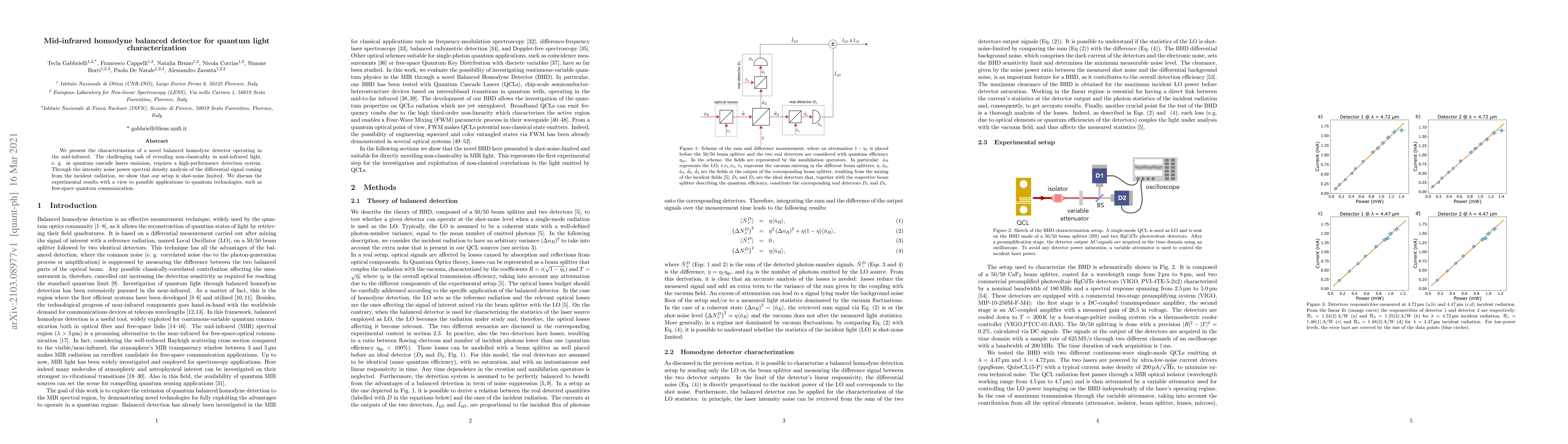 A new mid-infrared homodyne detector has been developed to characterize non-classical light in quantum technologies, showing shot-noise limit performance through analysis of its intensity noise power spectral density.