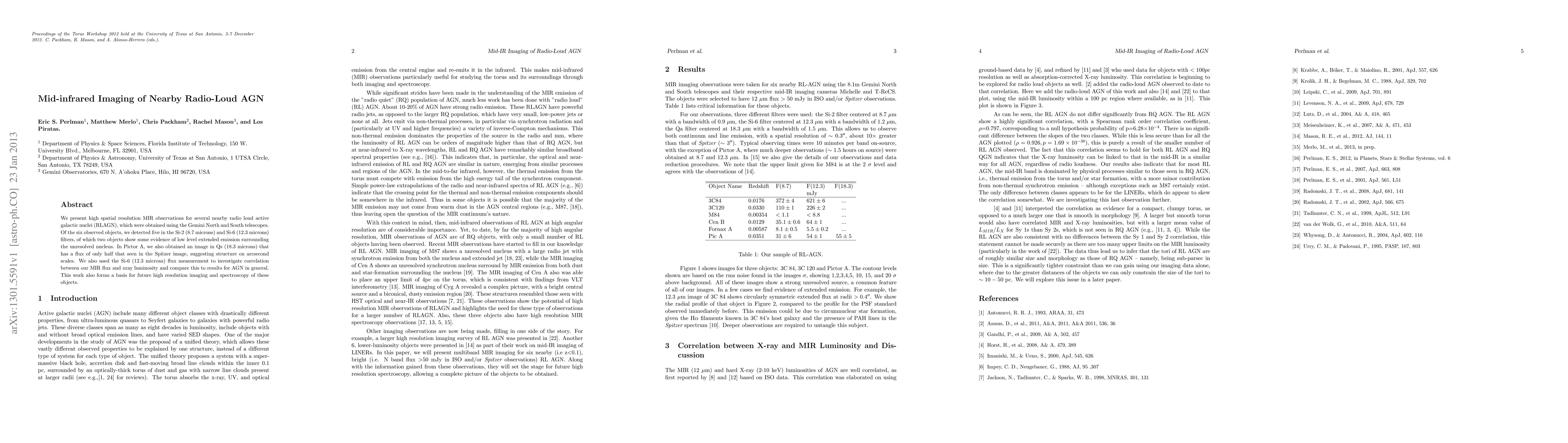 The study presents high spatial resolution MIR observations for RLAGN, providing insights into their properties and potential correlations with X-ray luminosity.