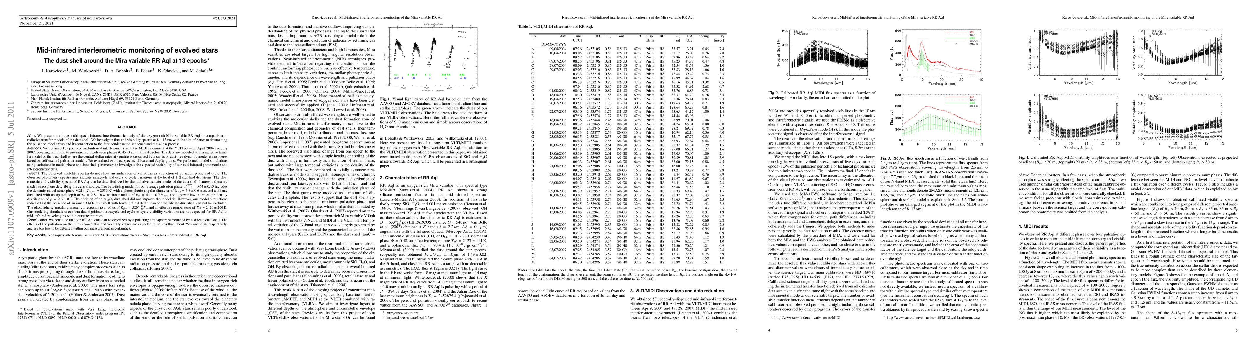A study using mid-infrared interferometry monitored a Mira variable star, RR Aql, with 13 epochs of data, finding it surrounded by a silicate dust shell with minimal effects on visibility.