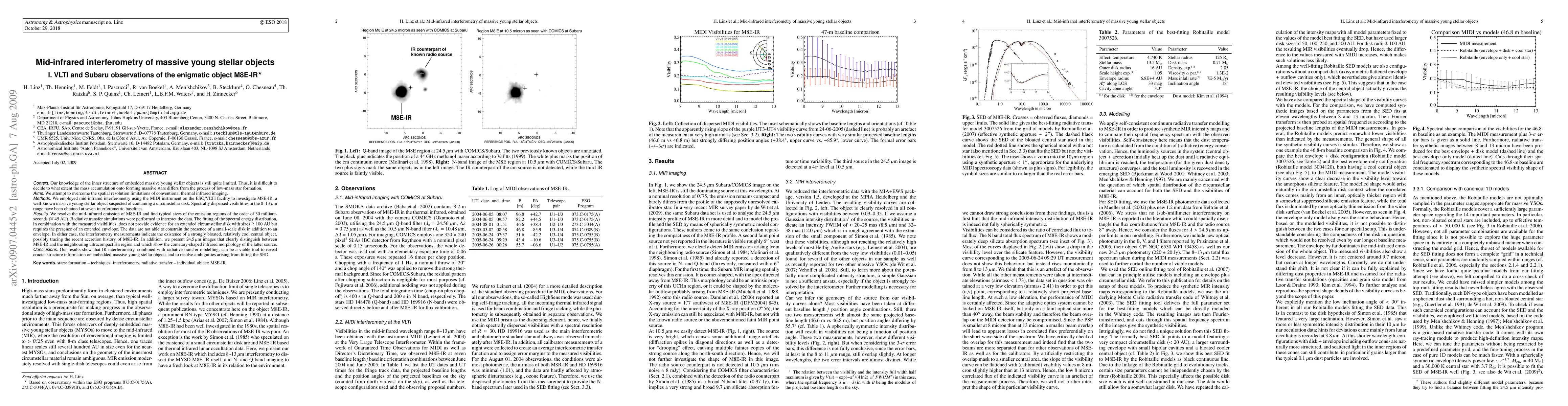 This paper uses mid-infrared interferometry to investigate the massive young stellar object M8E-IR, revealing that it likely contains a bloated, cool central object and an extended envelope, but no large circumstellar disk. The study highlights the potential of IR interferometry for probing the inner structure of such objects.