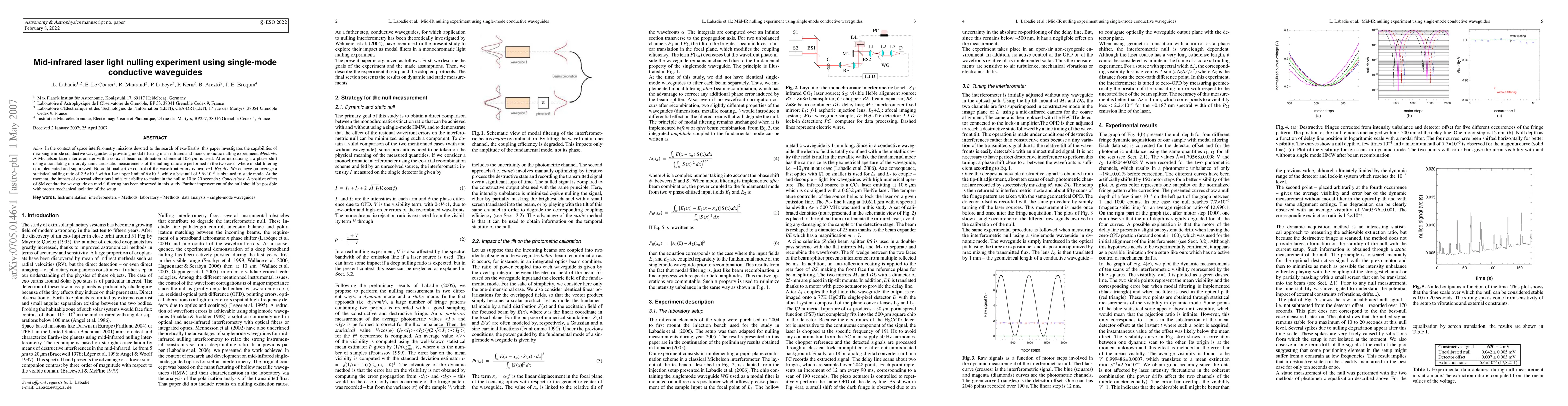 This study explores the use of single-mode conductive waveguides for modal filtering in mid-infrared laser nulling experiments, achieving a nulling ratio of 2.5e-4 on average. The results suggest that these waveguides can enhance nulling performance, but external vibrations currently limit sustained null maintenance.