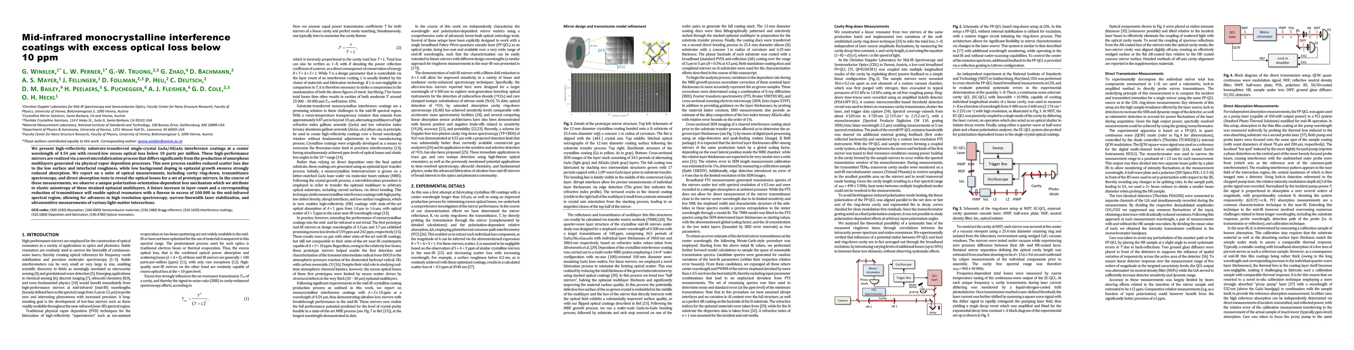 The research presents a novel fabrication process for high-reflectivity mid-infrared monocrystalline GaAs/AlGaAs interference coatings with exceptionally low excess optical loss below 10 parts per million. These coatings exhibit reduced scatter and absorption losses, enabling potential for high-finesse optical resonators with applications in high-resolution spectroscopy, laser stabilization, and ultrasensitive measurements.