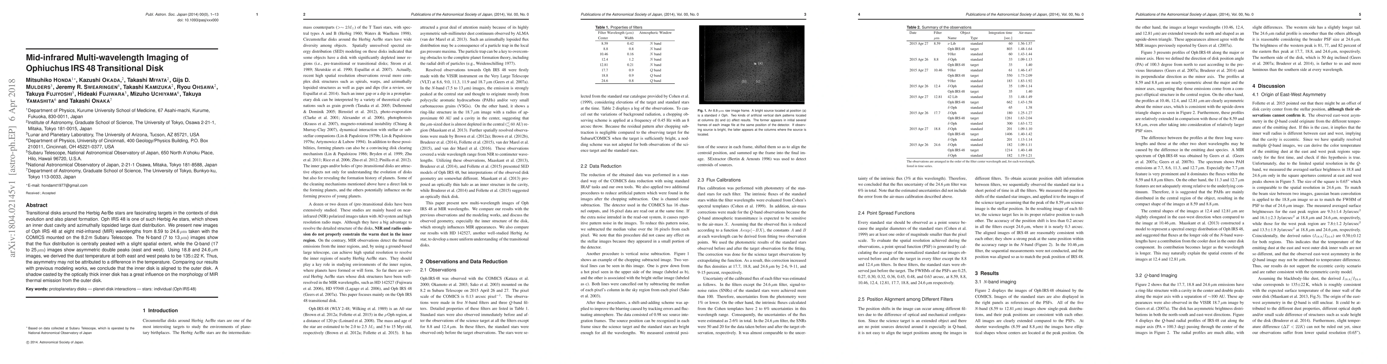 Transitional disks around the Herbig Ae/Be stars are fascinating targets in the contexts of disk evolution and also planet formation. Oph IRS 48 is one of such Herbig Ae stars, which shows an inner dust cavity and azimuthally lopsided large dust distribution. We present new images of Oph IRS 48 at eight mid-infrared (MIR) wavelengths from 8.59 to 24.6\,$\mu {\rm m}$ taken with the COMICS mounted on the 8.2\,m Subaru Telescope. The N-band (7 to 13\,$\mu {\rm m}$) images show that the flux distribution is centrally peaked with a slight spatial extent, while the Q-band (17 to 25\,$\mu {\rm m}$) images show asymmetric double peaks (east and west). Using 18.8 and 24.6\,$\mu$m images, we derived the dust temperature at both east and west peaks to be 135$\pm$22 K. Thus, the asymmetry may not be attributed to a difference in the temperature. % thus other reason is necessary to explain the asymmetry of east and west peaks in Q-band. Comparing our results with previous modeling works, we conclude that the inner disk is aligned to the outer disk. A shadow casted by the optically thick inner disk has a great influence on the morphology of MIR thermal emission from the outer disk.