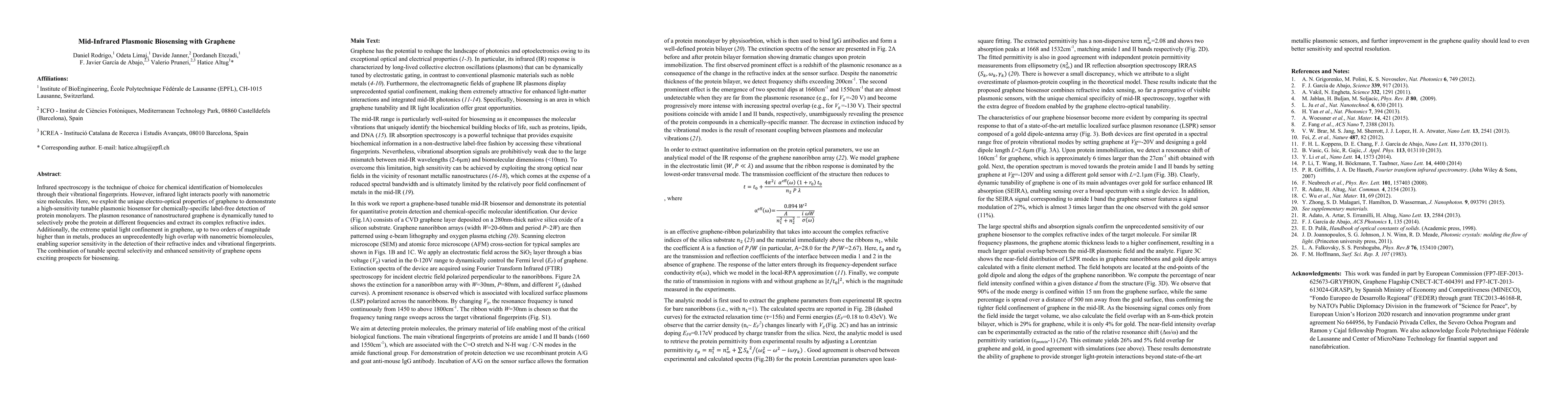 Researchers developed a high-sensitivity biosensor using graphene to detect protein monolayers, leveraging its tunable plasmonic properties for selective probing and enhanced sensitivity.
