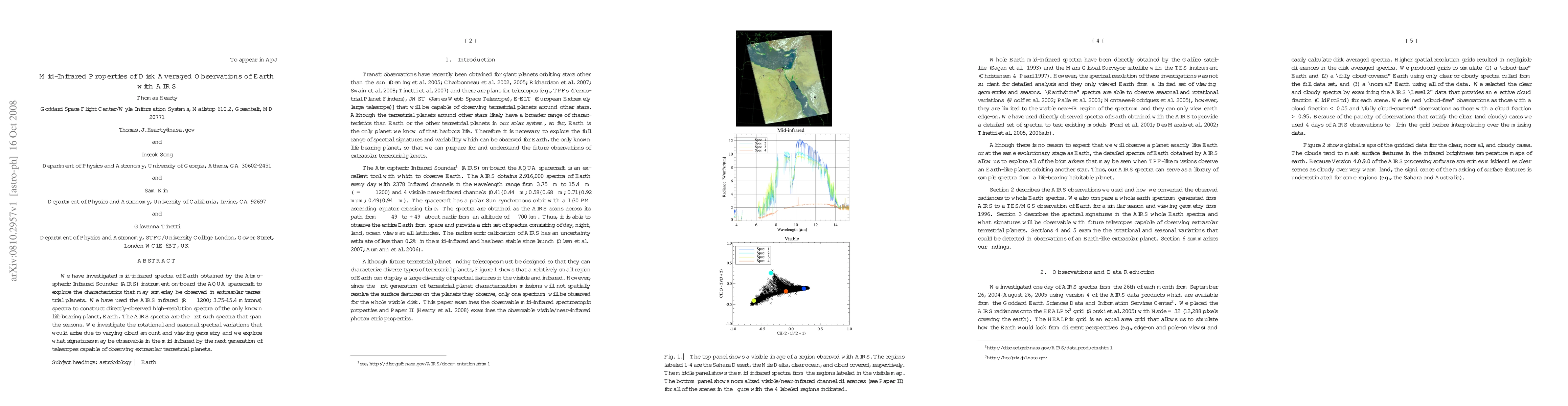 This study uses AIRS instrument data to create high-resolution mid-infrared spectra of Earth, revealing seasonal and rotational spectral variations due to clouds. It explores potential observable signatures for future extrasolar terrestrial planet observation missions.