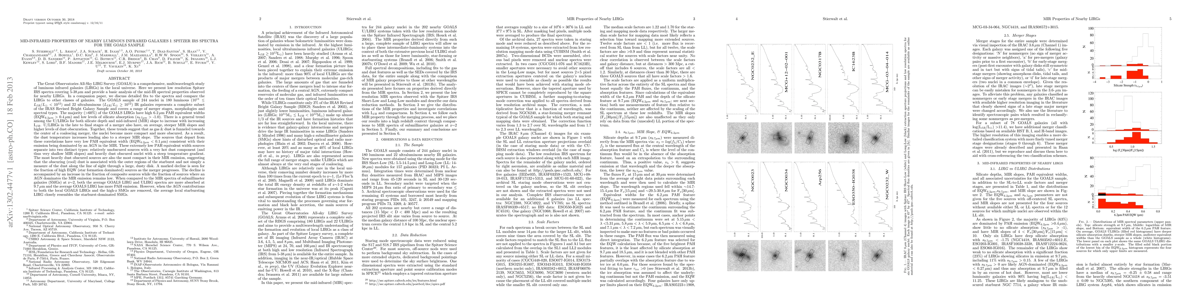 The Great Observatories All-Sky LIRG Survey (GOALS) is a multiwavelength study of luminous infrared galaxies (LIRGs) in the local universe. Here we present low resolution Spitzer spectra covering 5-38um and provide a basic analysis of the mid-IR spectral properties for nearby LIRGs. In a companion paper, we discuss detailed fits to the spectra. The GOALS sample of 244 nuclei in 180 luminous and 22 ultraluminous IR galaxies represents a complete subset of the IRAS RBGS and covers a range of merger stages, morphologies and spectral types. The majority (>60%) of GOALS LIRGs have high 6.2um PAH equivalent widths (EQW > 0.4um) and low levels of silicate absorption (s_9.7um >-1.0). There is a general trend among the U/LIRGs for silicate depth and MIR slope to increase with LIR. U/LIRGs in the late stages of a merger also have on average steeper MIR slopes and higher levels of dust obscuration. Together these trends suggest that as gas & dust is funneled towards the center of a coalescing merger, the nuclei become more compact and obscured. The sources that depart from these correlations have very low PAH EQW (EQW < 0.1um) consistent with their MIR emission being dominated by an AGN. The most heavily dust obscured sources are the most compact in their MIR emission, suggesting that the obscuring (cool) dust is associated with the outer regions of the starburst. As the merger progresses a marked decline is seen for the fraction of high EQW (star formation dominated) sources while the fraction of composite sources increases but the fraction of AGN-dominated sources remains low. When compared to the MIR spectra of submillimeter galaxies (SMGs) at z~2, the average GOALS LIRG is more absorbed at 9.7um and has more PAH emission. However, when the AGN contributions to both the local LIRGs and the high-z SMGs are removed, the average local starbursting LIRG closely resembles the starbursting SMGs.