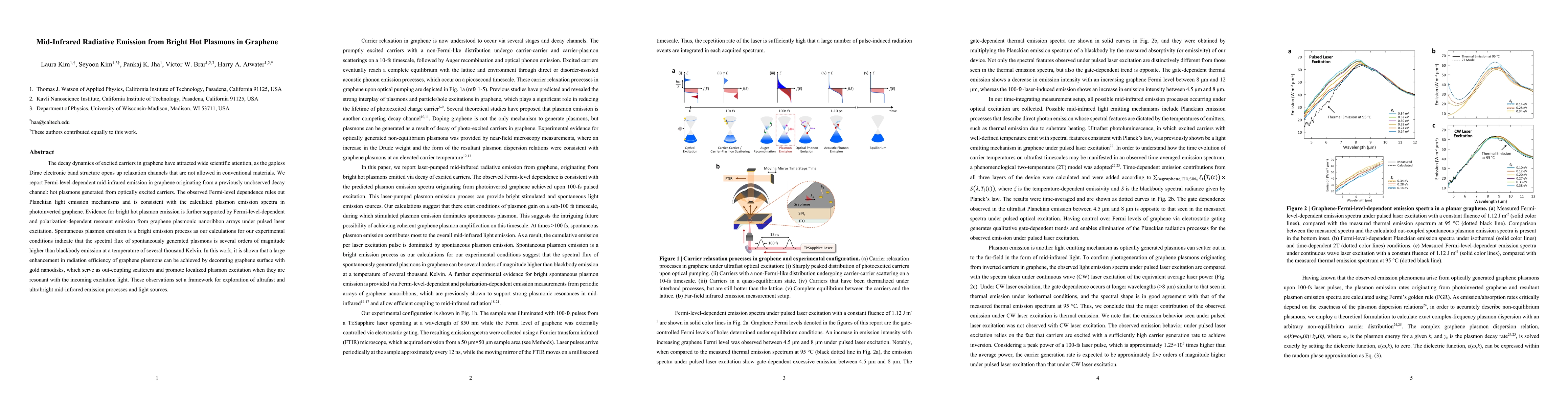 Theoretical and experimental demonstration of bright spontaneous plasmon emission in graphene and enhancement of far-field radiation efficiency through engineered nanostructures.