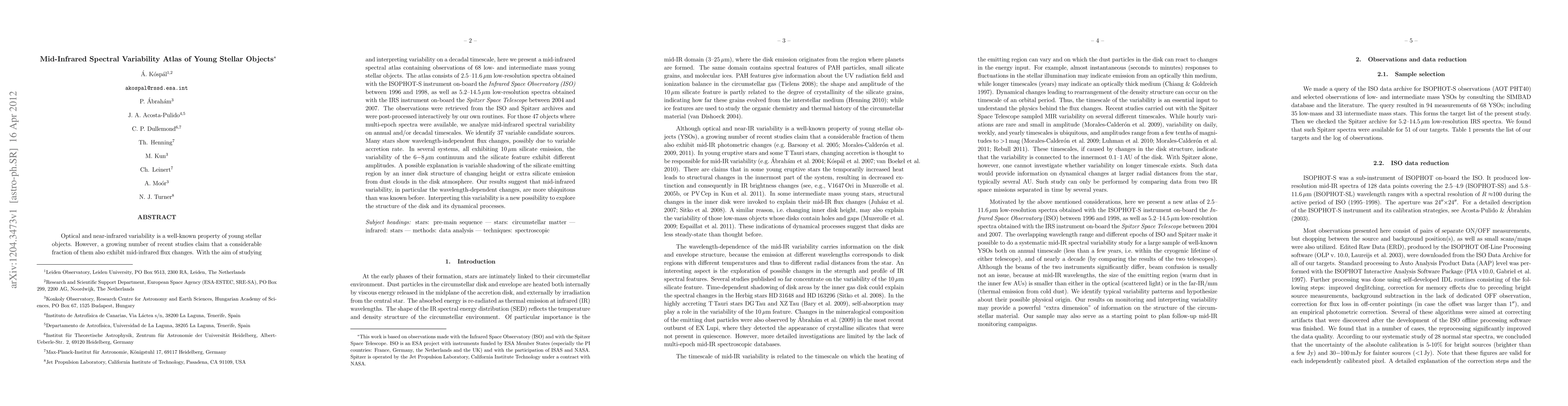This study presents a mid-infrared spectral atlas of 68 young stellar objects, revealing significant variability in the mid-infrared range on annual and decadal timescales. The analysis identifies 37 variable candidates, suggesting that wavelength-dependent changes are more common than previously thought, potentially revealing insights into disk structure and dynamics.