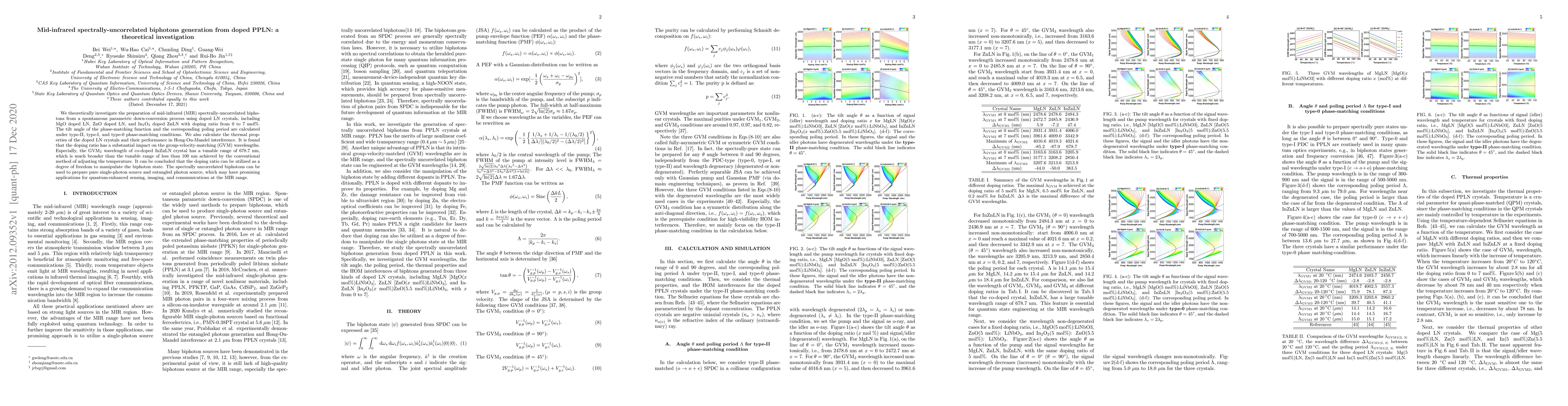 This paper theoretically investigates the generation of mid-infrared spectrally-uncorrelated biphotons via spontaneous parametric down-conversion in doped LN crystals, finding that doping ratios significantly affect group-velocity-matching wavelengths. The study highlights the potential of tunable biphotons for quantum-enhanced sensing and communications.