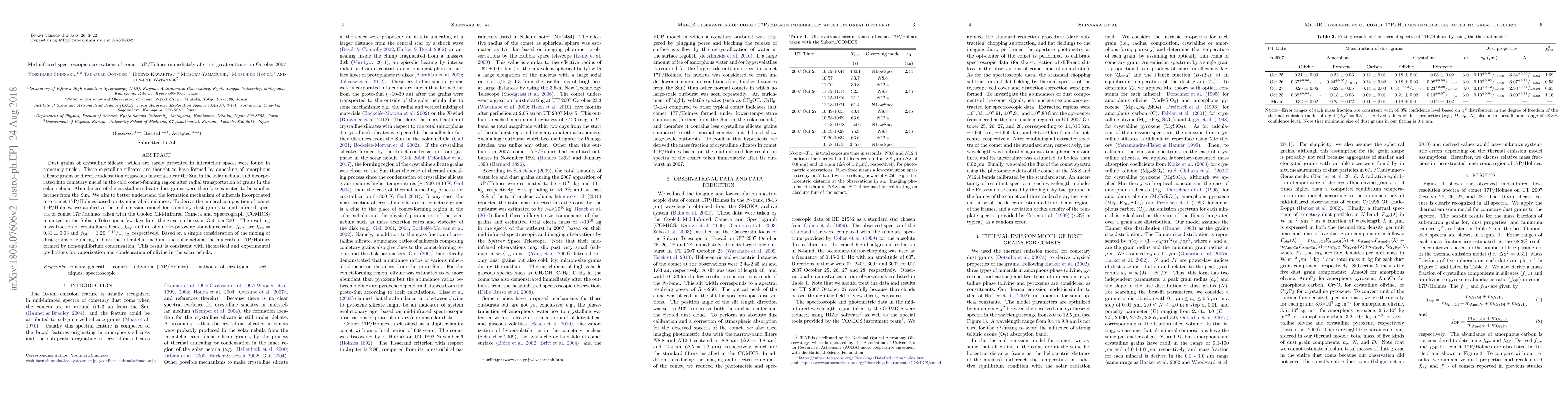 The study analyzed comet 17P/Holmes' mid-infrared spectra post its 2007 outburst, revealing crystalline silicate abundance (f_cry = 0.31 +/- 0.03) and olivine-to-pyroxene ratio (f_OP = 1.20 +0.16/-0.12). The findings suggest these minerals formed by non-equilibrium condensation in the solar nebula, aligning with theoretical and experimental predictions.