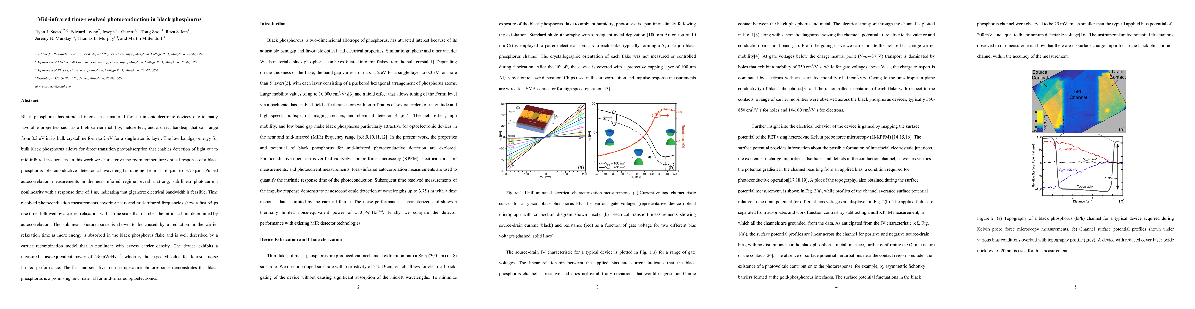 The paper presents a detailed analysis of the time-resolved photoconduction in black phosphorus, revealing its potential for mid-infrared optoelectronic applications.