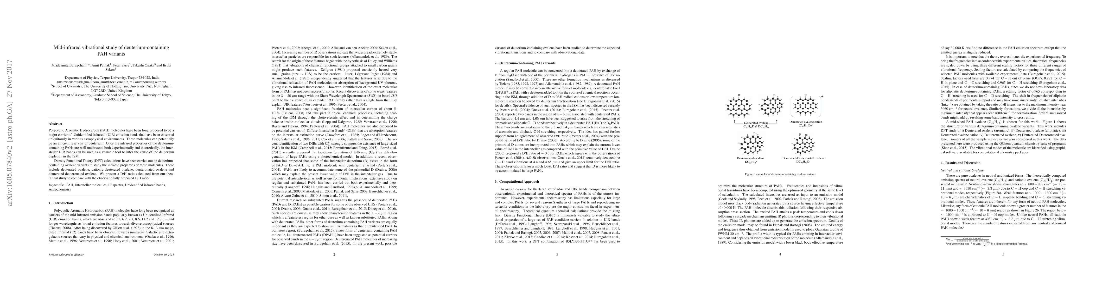 Polycyclic Aromatic Hydrocarbon (PAH) molecules have been long proposed to be a major carrier of 'Unidentified Infrared' (UIR) emission bands that have been observed ubiquitously in various astrophysical environments. These molecules can potentially be an efficient reservoir of deuterium. Once the infrared properties of the deuterium- containing PAHs are well understood both experimentally and theoretically, the interstellar UIR bands can be used as a valuable tool to infer the cause of the deuterium depletion in the ISM. Density Functional Theory (DFT) calculations have been carried out on deuterium-containing ovalene variants to study the infrared properties of these molecules. These include deuterated ovalene, cationic deuterated ovalene, deuteronated ovalene and deuterated-deuteronated ovalene. We present a D/H ratio calculated from our theoretical study to compare with the observationally proposed D/H ratio.