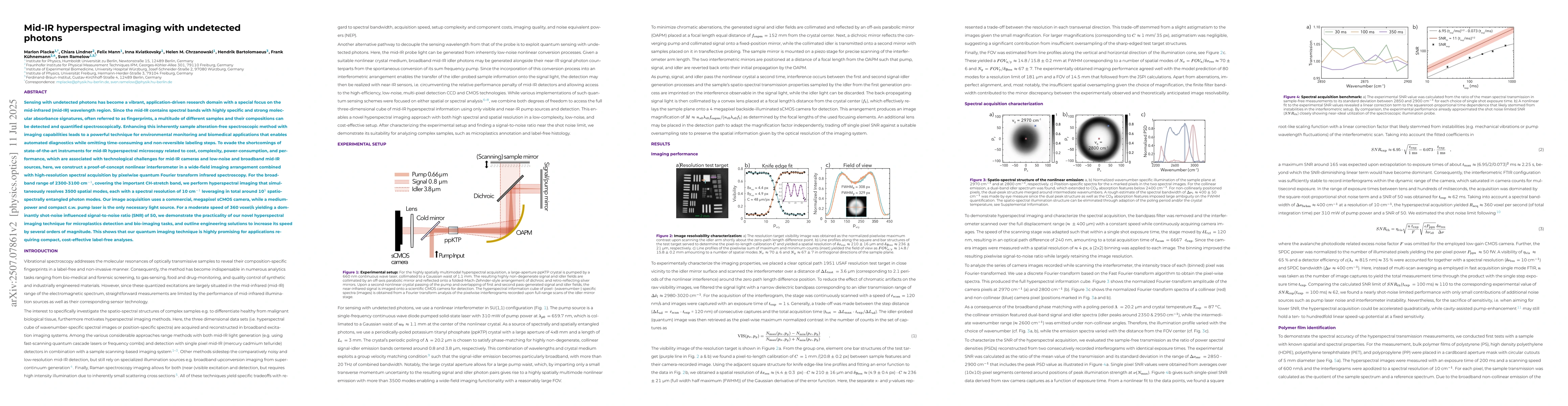 The approach combines quantum imaging with undetected photons and quantum Fourier transform infrared spectroscopy, offering a novel method for mid-IR hyperspectral acquisition close to the shot noise limit of the illumination source.