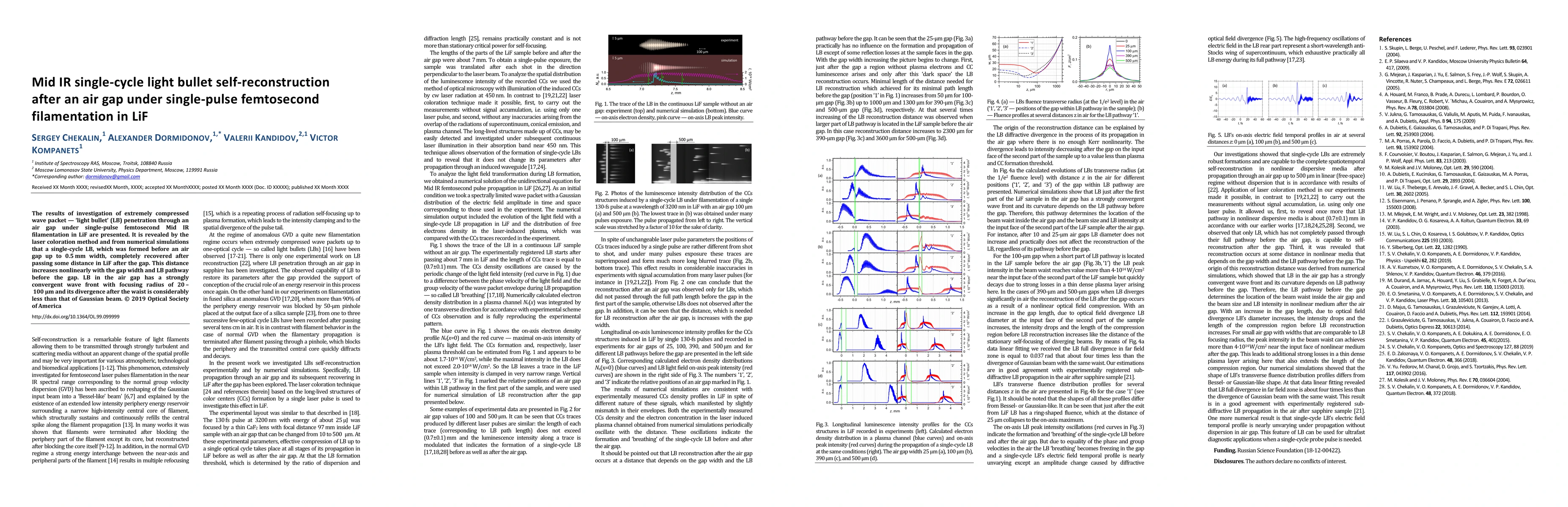 The results of investigation of extremely compressed wave packet-light bullet (LB) penetration through an air gap under single-pulse femtosecond Mid IR filamentation in LiF are presented. It is revealed by the laser coloration method and from numerical simulations that a single-cycle LB, which was formed before an air gap up to 0.5 mm width, completely recovered after passing some distance in LiF after the gap. This distance increases nonlinearly with the gap width and LB pathway before the gap. LB in the air gap has a strongly convergent wave front with focusing radius of 20-100 {\mu}m and its divergence after the waist is considerably less than that of Gaussian beam.