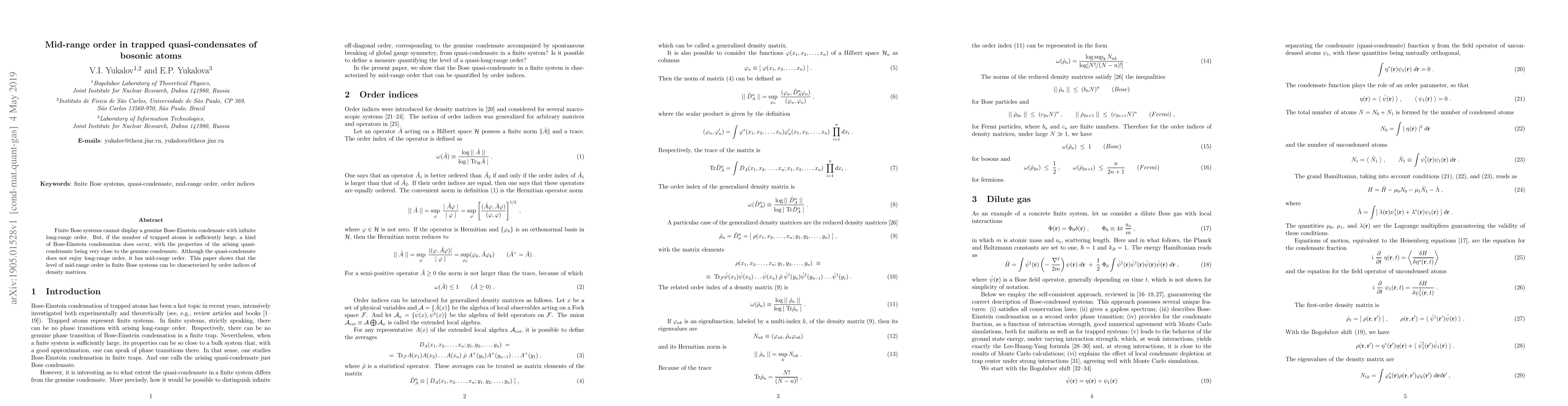 A study on finite Bose systems found that a quasi-condensate can exhibit mid-range order, which is characterized by order indices of density matrices, even if it doesn't have long-range order like a genuine condensate.