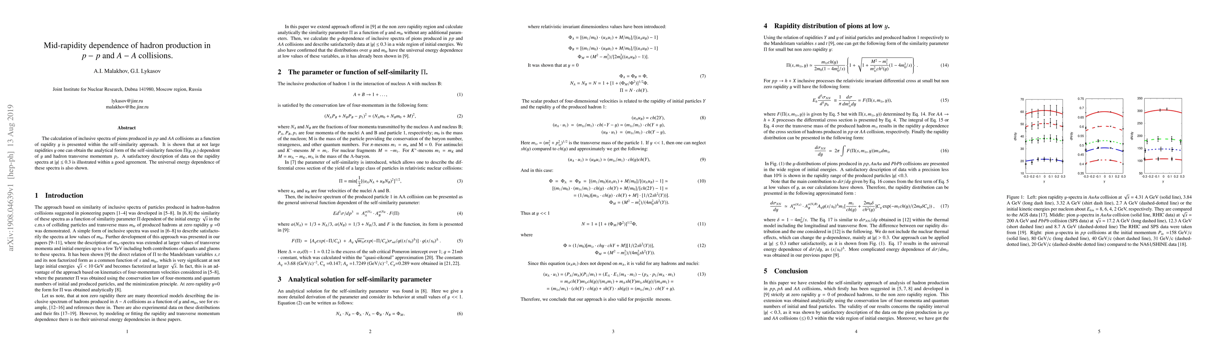 This research paper explores how particle production changes in p-p and A-A collisions at different rapidity values, with a focus on the self-similarity approach for calculating inclusive spectra of pions.