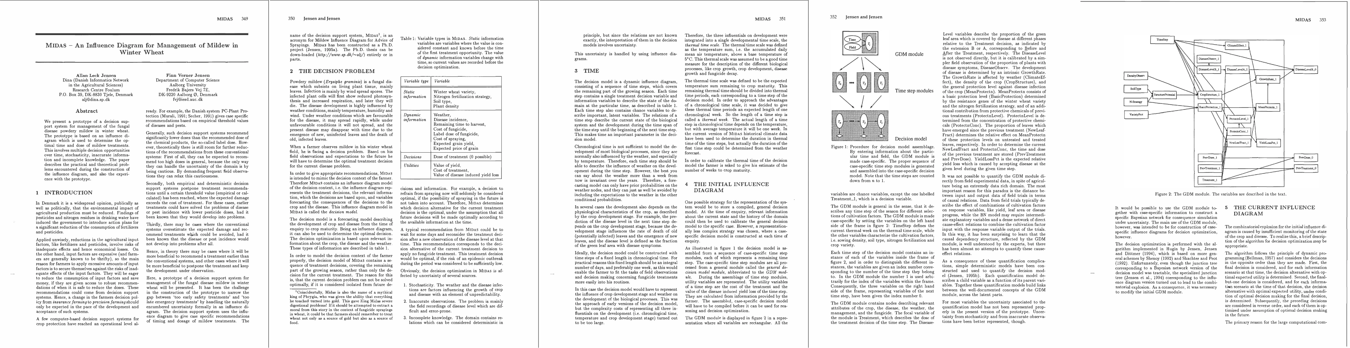 The MIDAS prototype is a decision support system for managing mildew in winter wheat using an influence diagram to determine optimal treatment timing and dosage, addressing multiple decision points, stochasticity, and incomplete information. The paper discusses challenges and practical experiences in constructing the influence diagram.