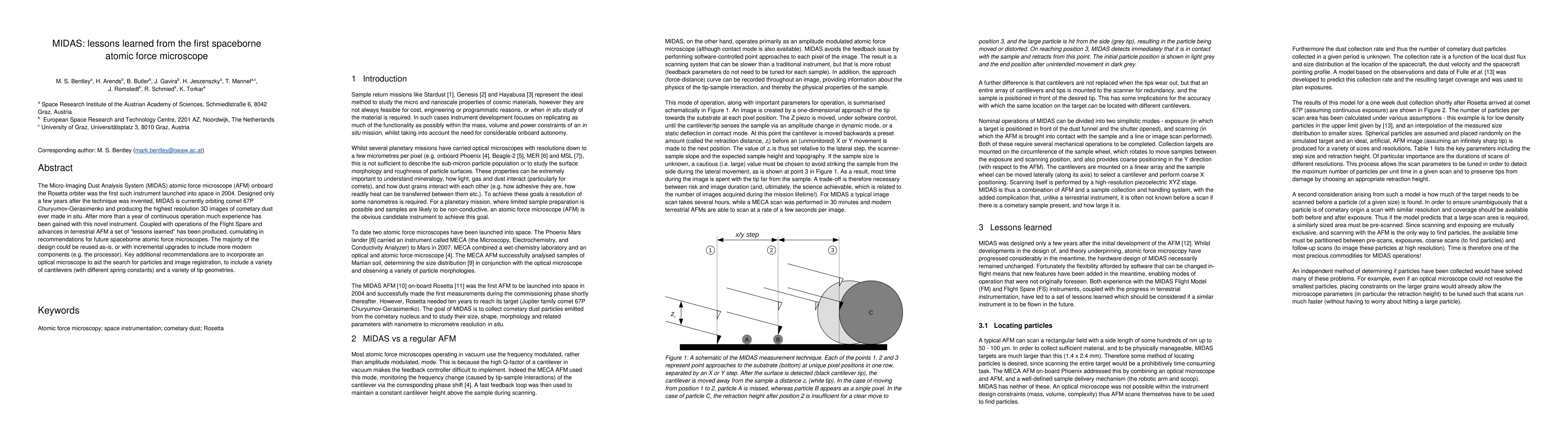 MIDAS, the first spaceborne atomic force microscope, has provided invaluable lessons learned after a year of continuous operation around comet 67P. Recommendations include reusing most of its design with minor updates, adding an optical microscope for better particle search, and incorporating diverse cantilevers and tip geometries for future instruments.