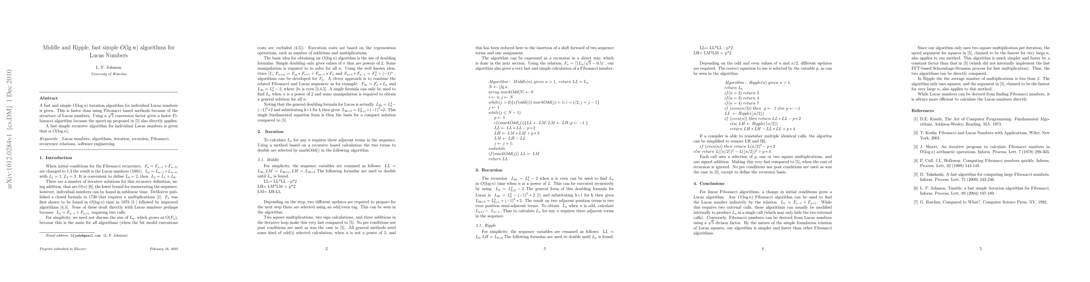 Researchers developed fast algorithms for calculating Lucas numbers with O(log n) complexity, outperforming traditional Fibonacci-based methods.