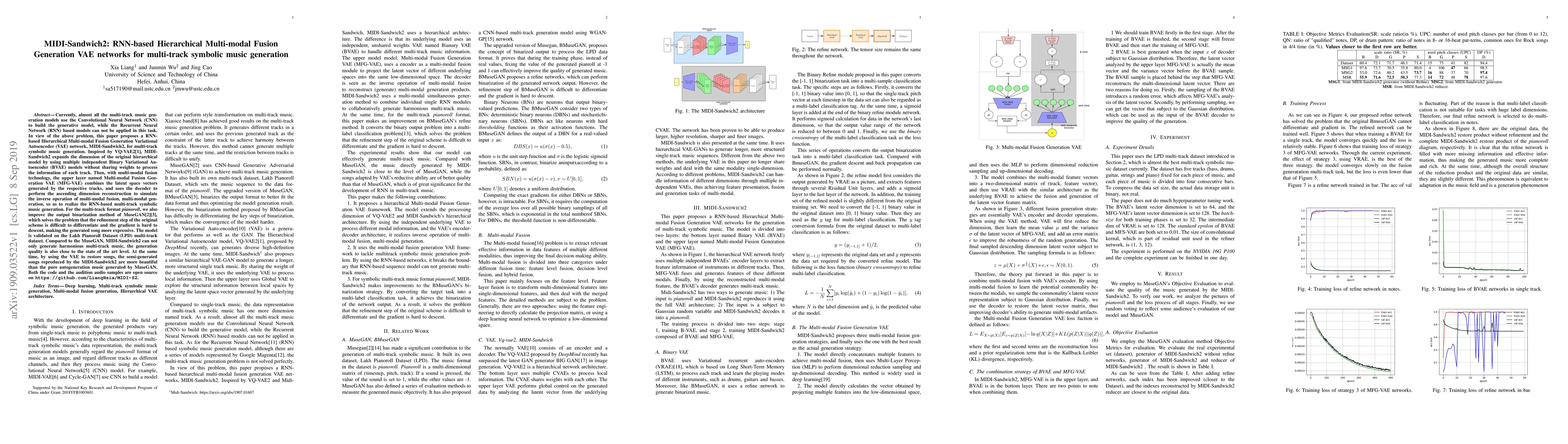 MIDI-Sandwich2 proposes a RNN-based hierarchical VAE network for multi-track symbolic music generation, utilizing multi-modal fusion to combine latent vectors from independent BVAE models for each track, achieving high-quality, harmonious music comparable to state-of-the-art models on the LPD dataset.